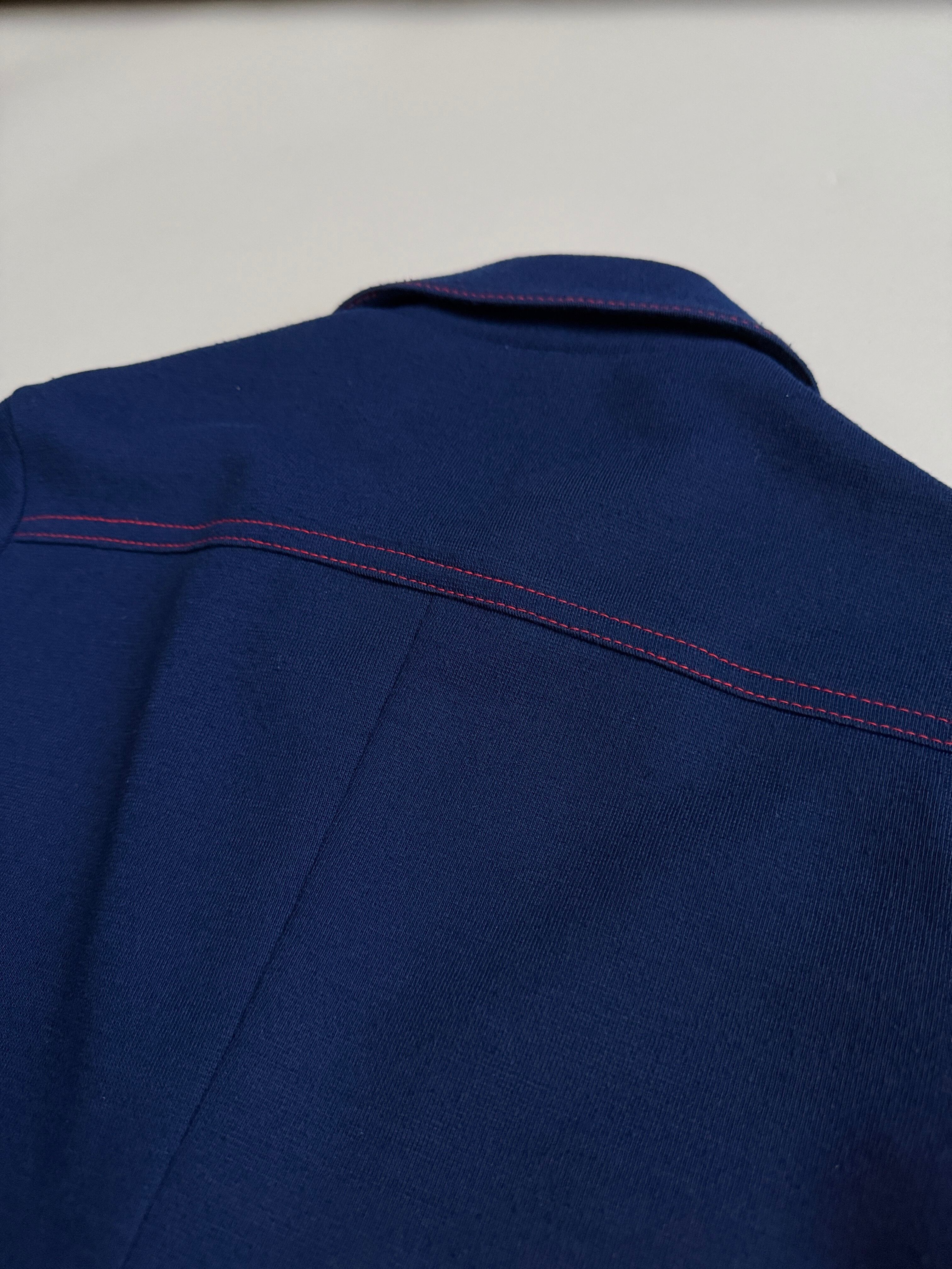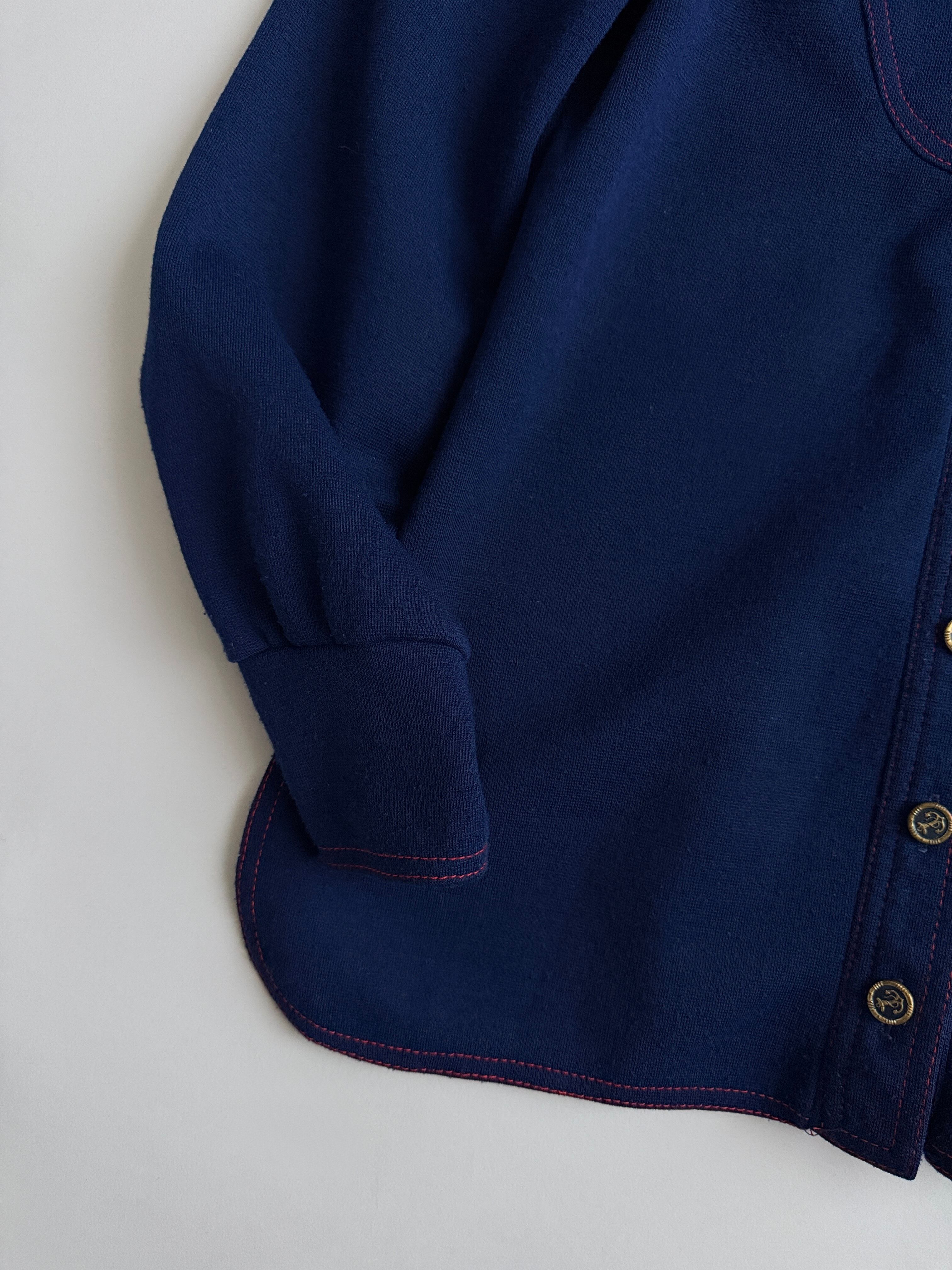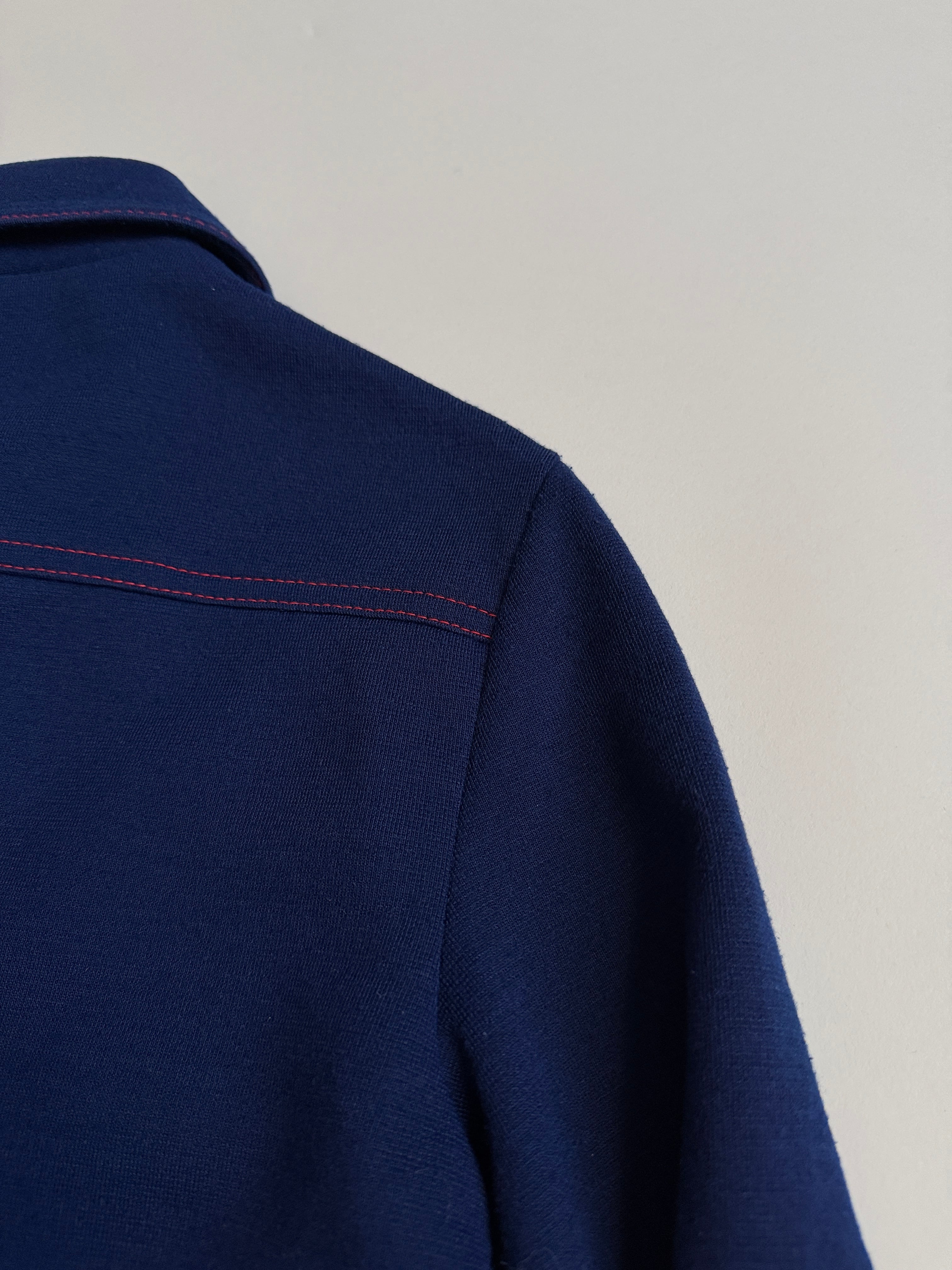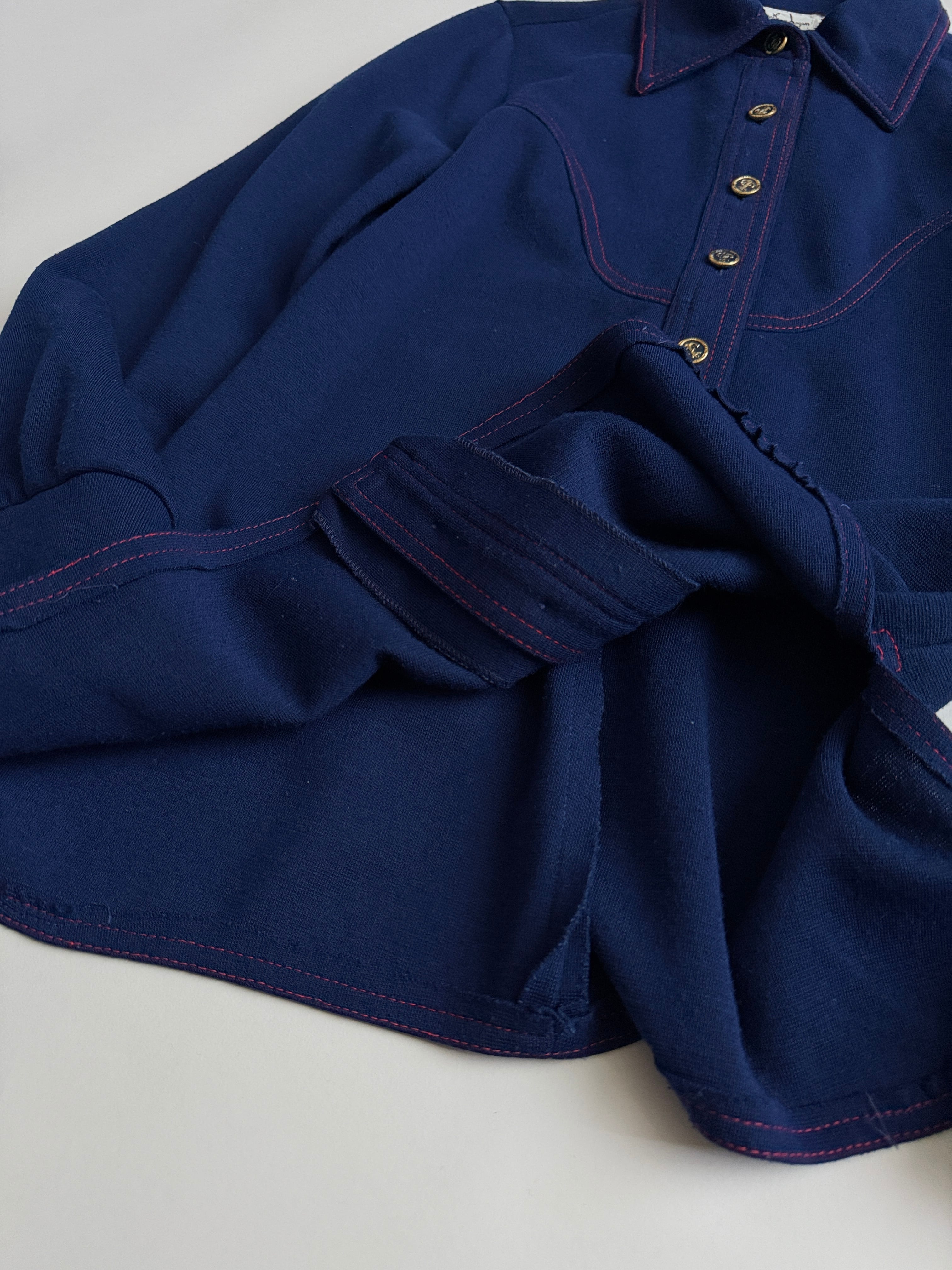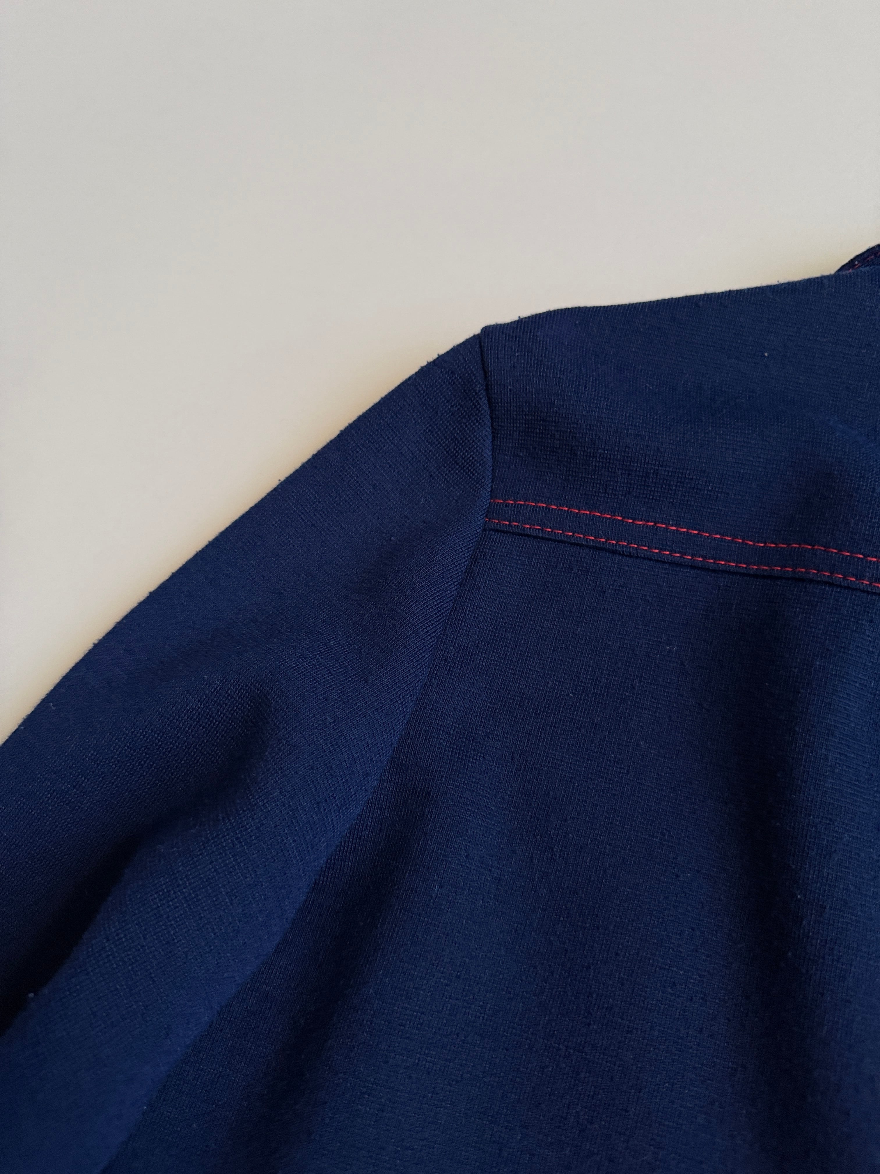 紺色に赤のステッチがかわいいウールシャツ