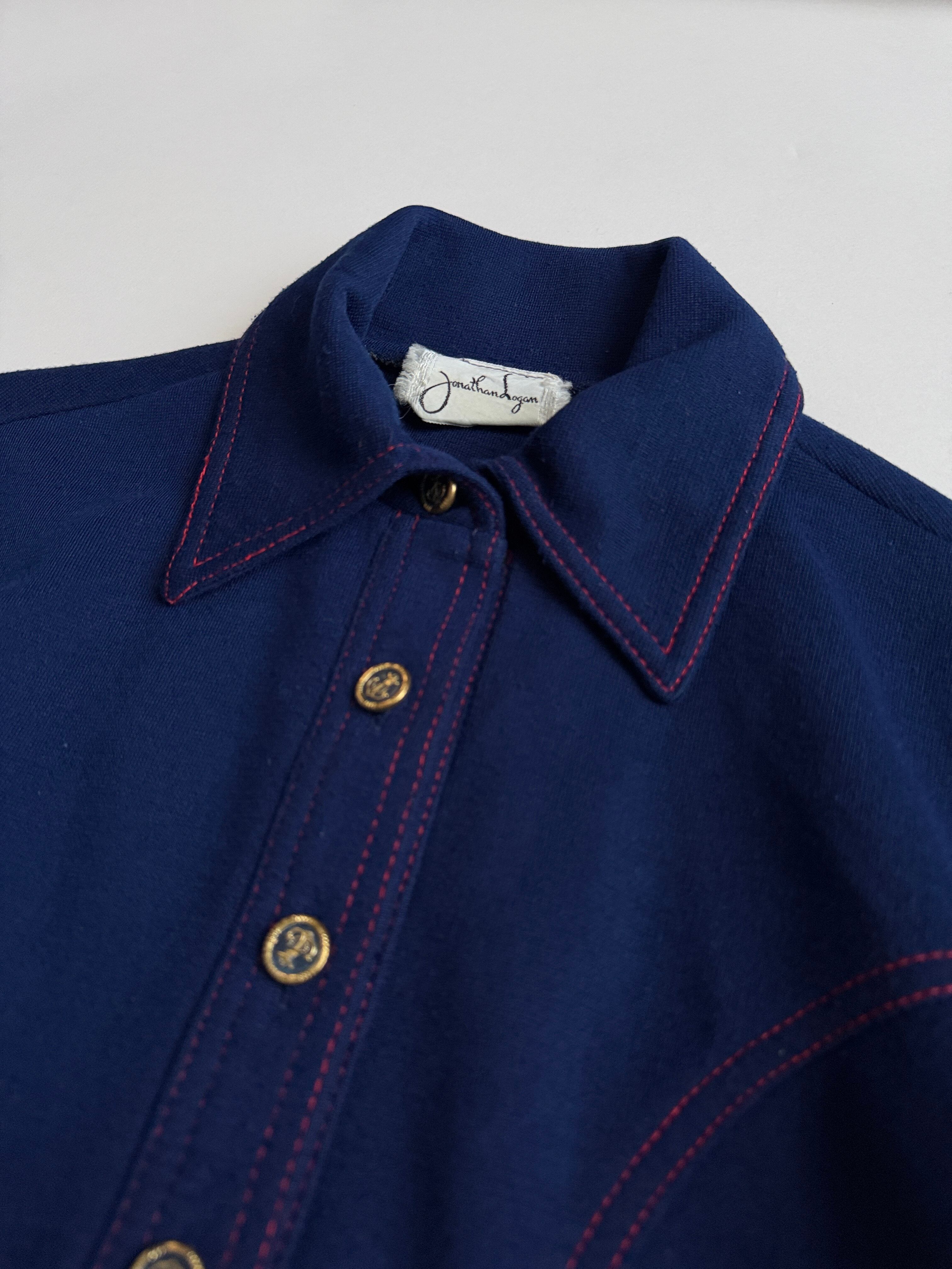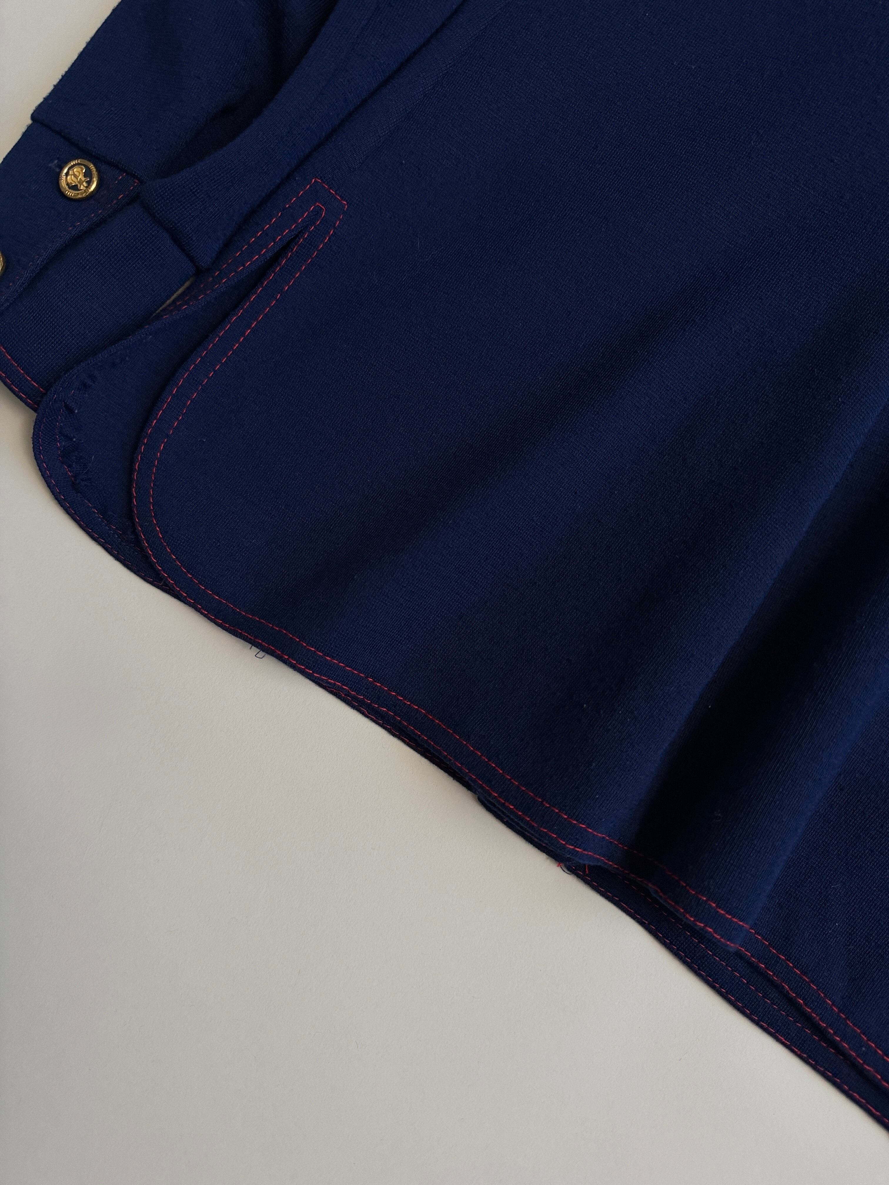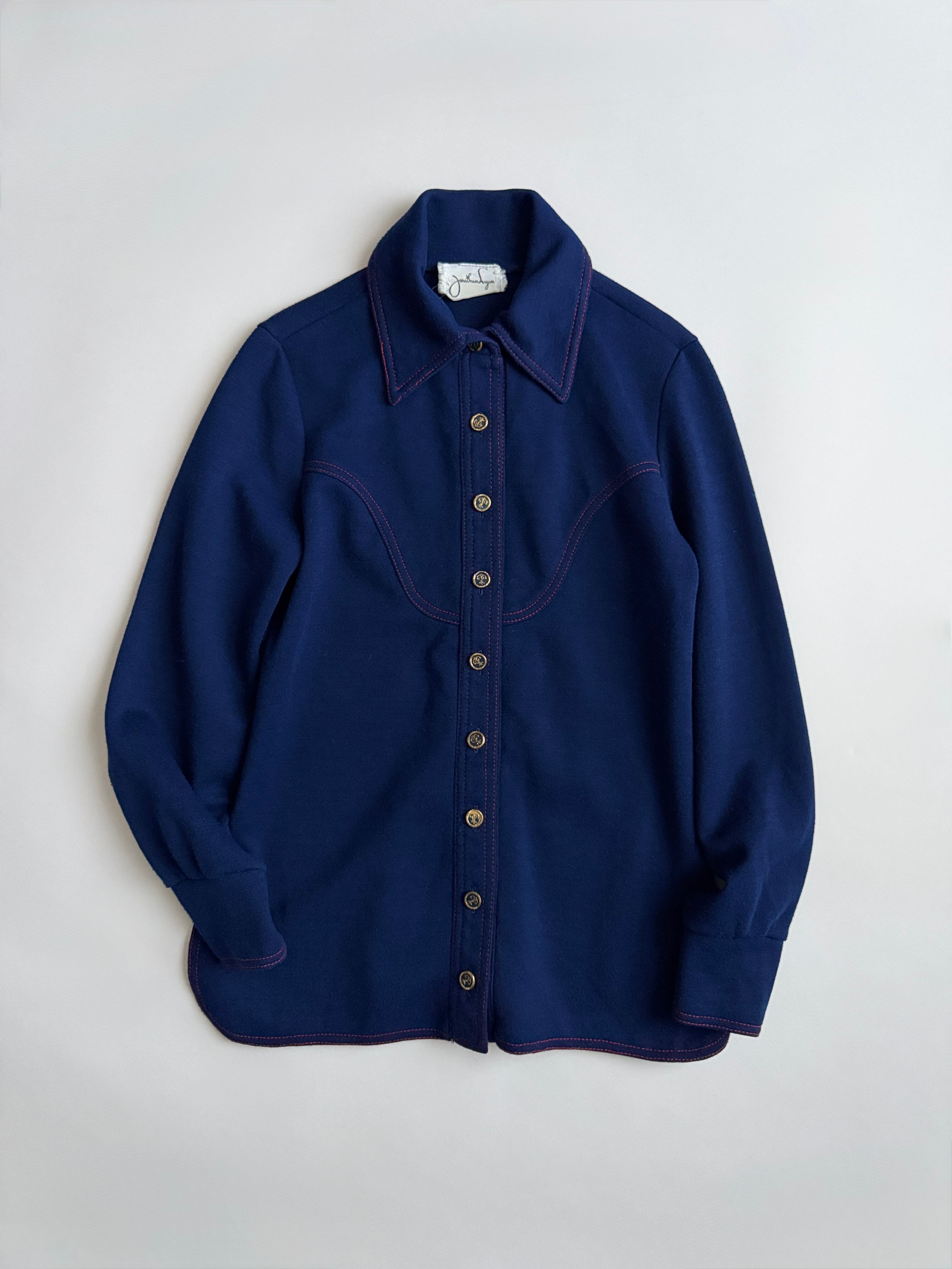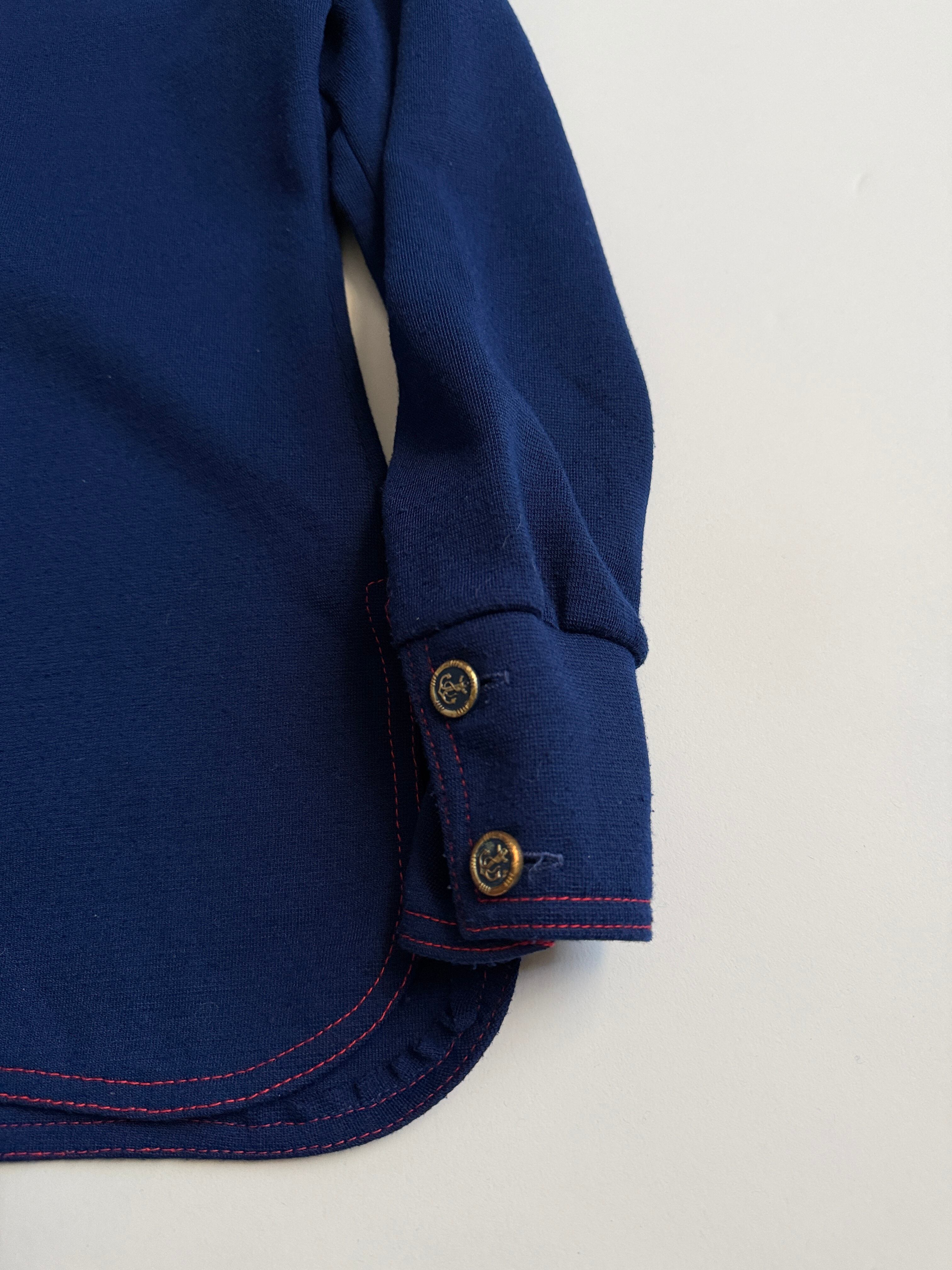 紺色に赤のステッチがかわいいウールシャツ