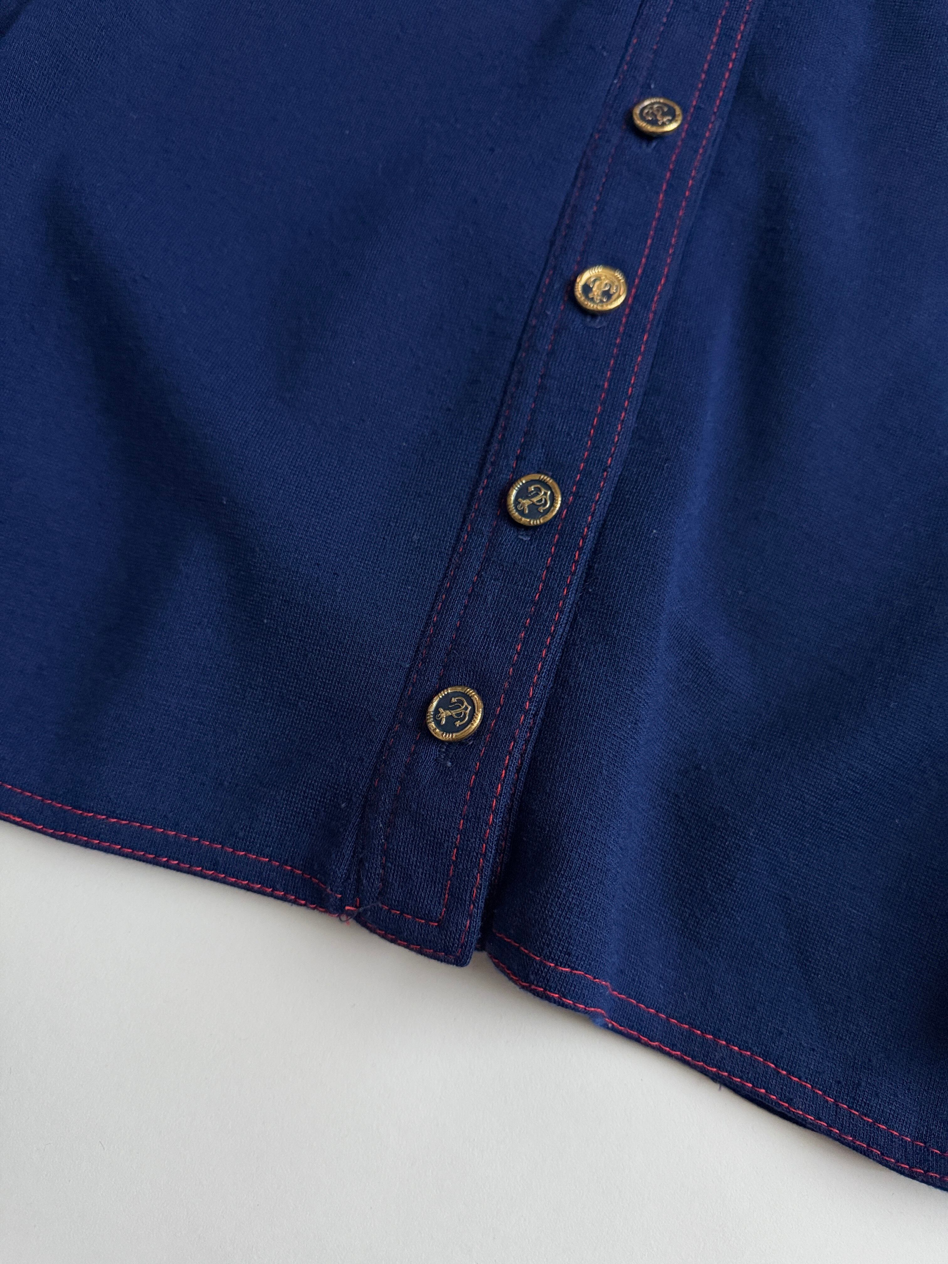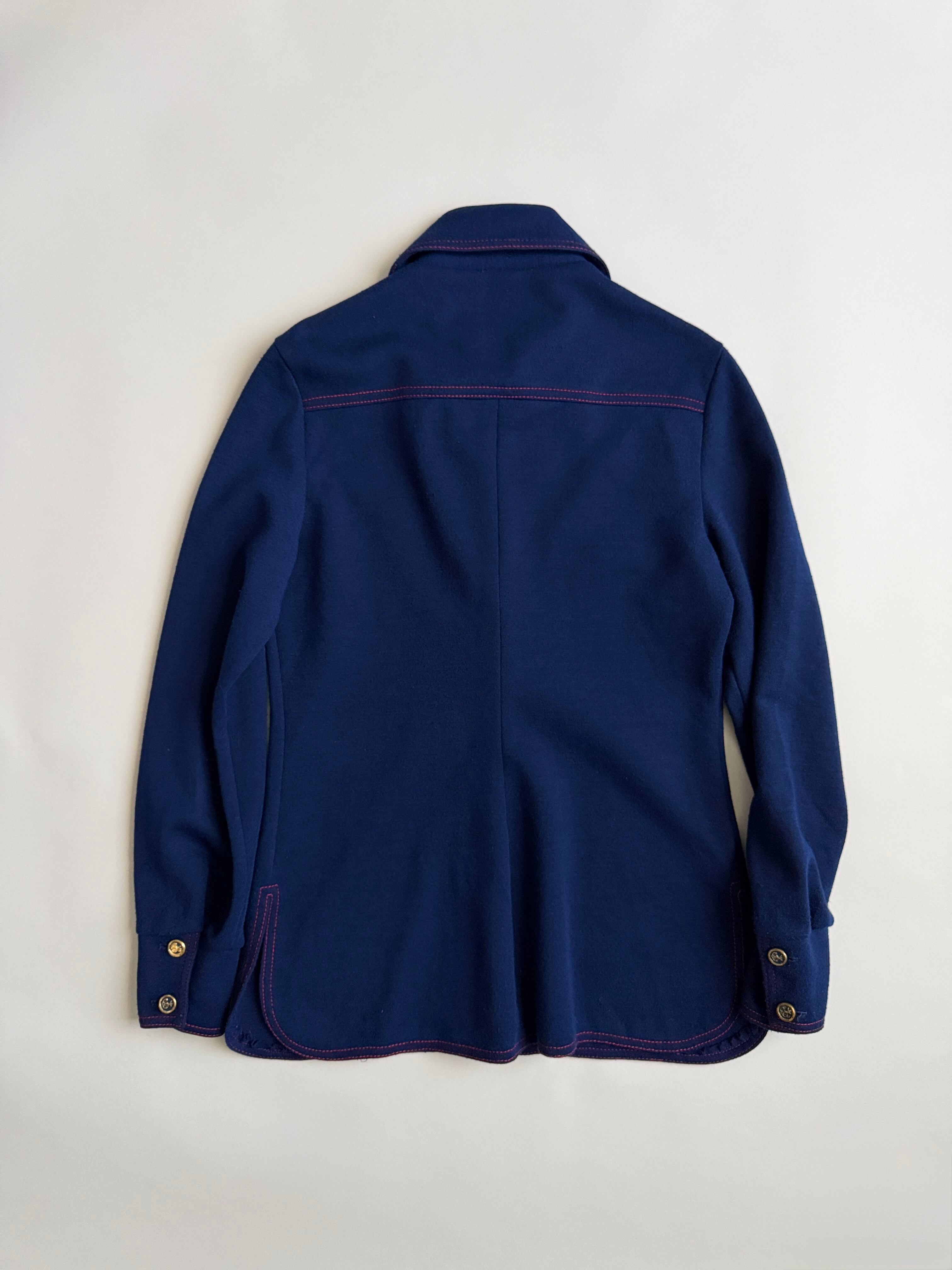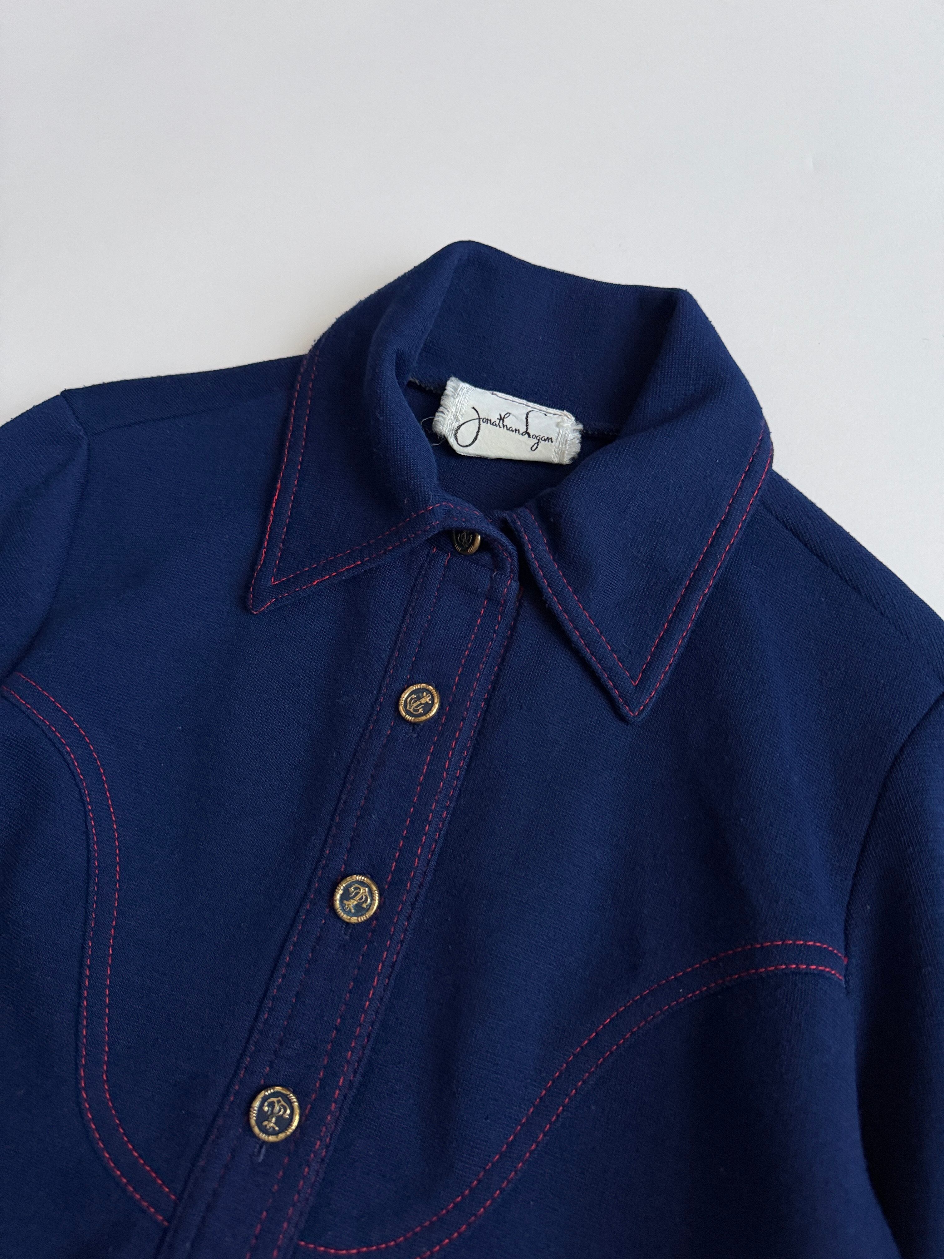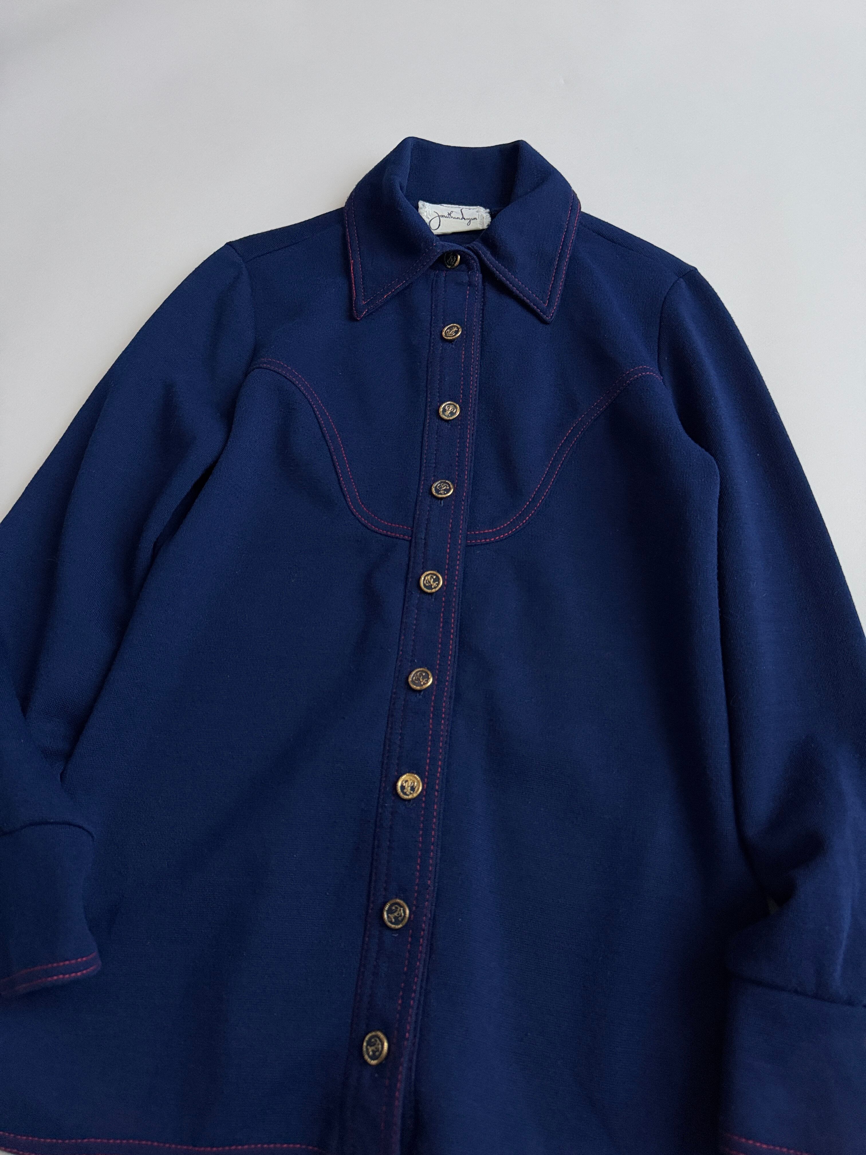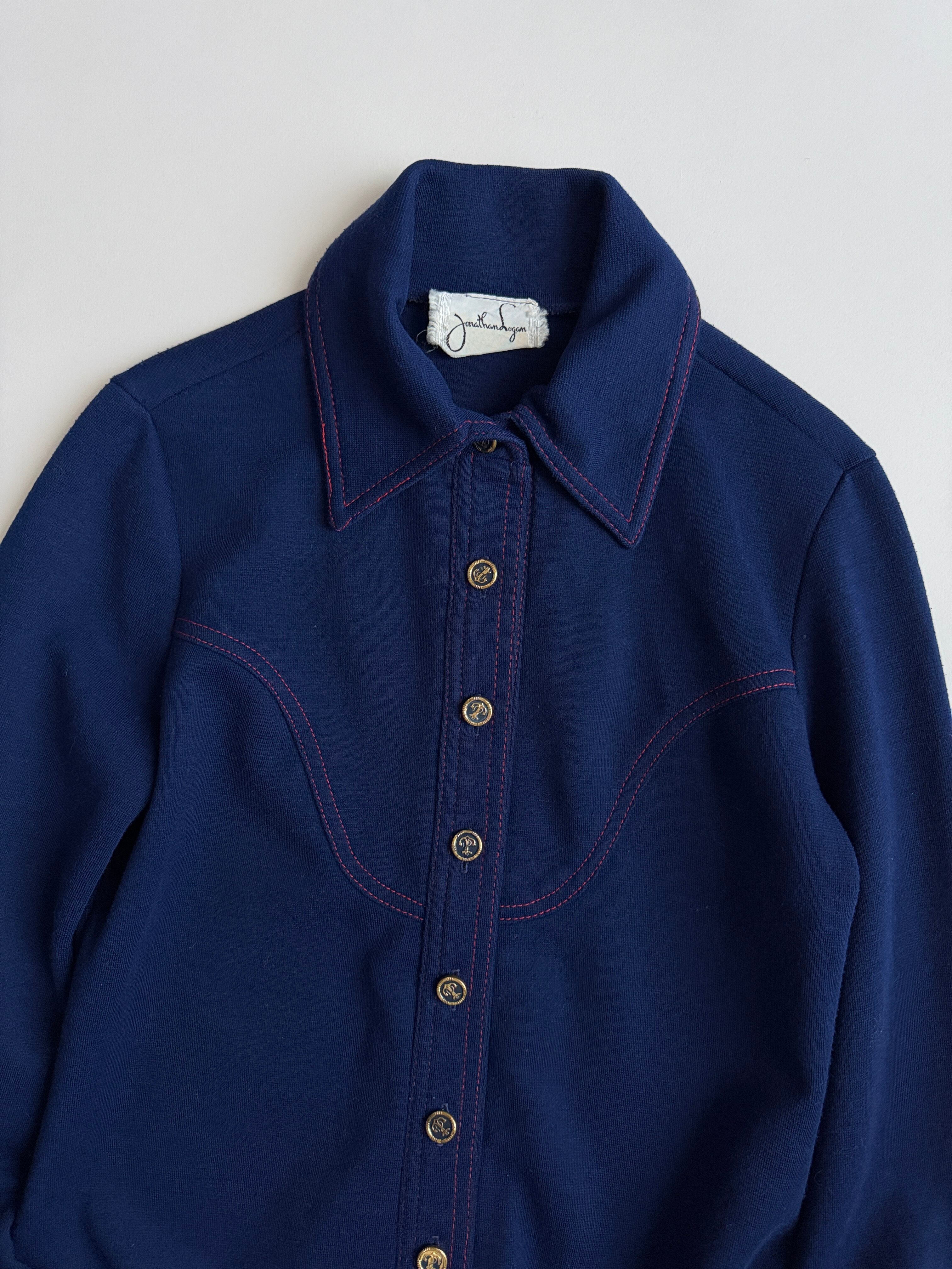 紺色に赤のステッチがかわいいウールシャツ