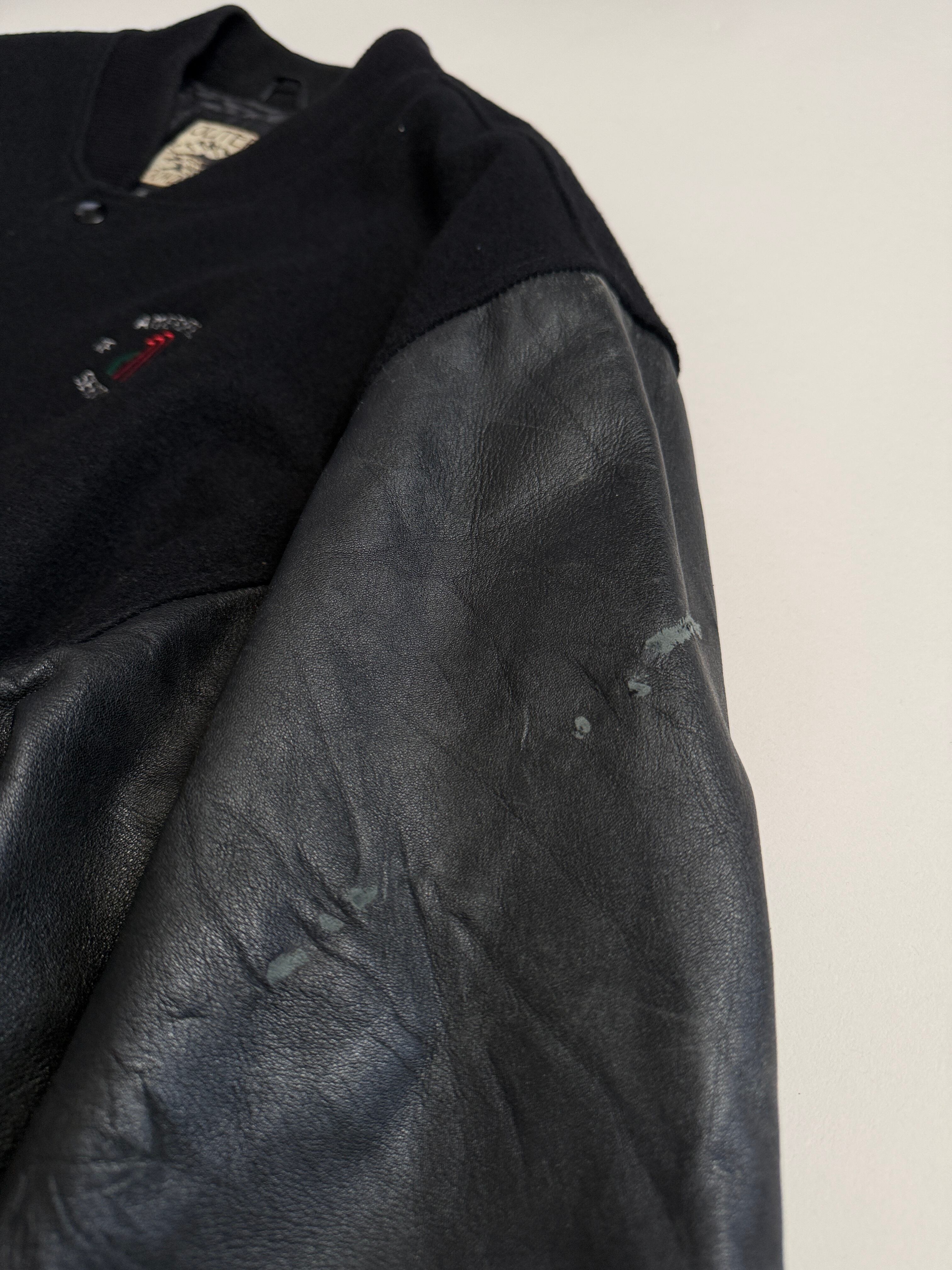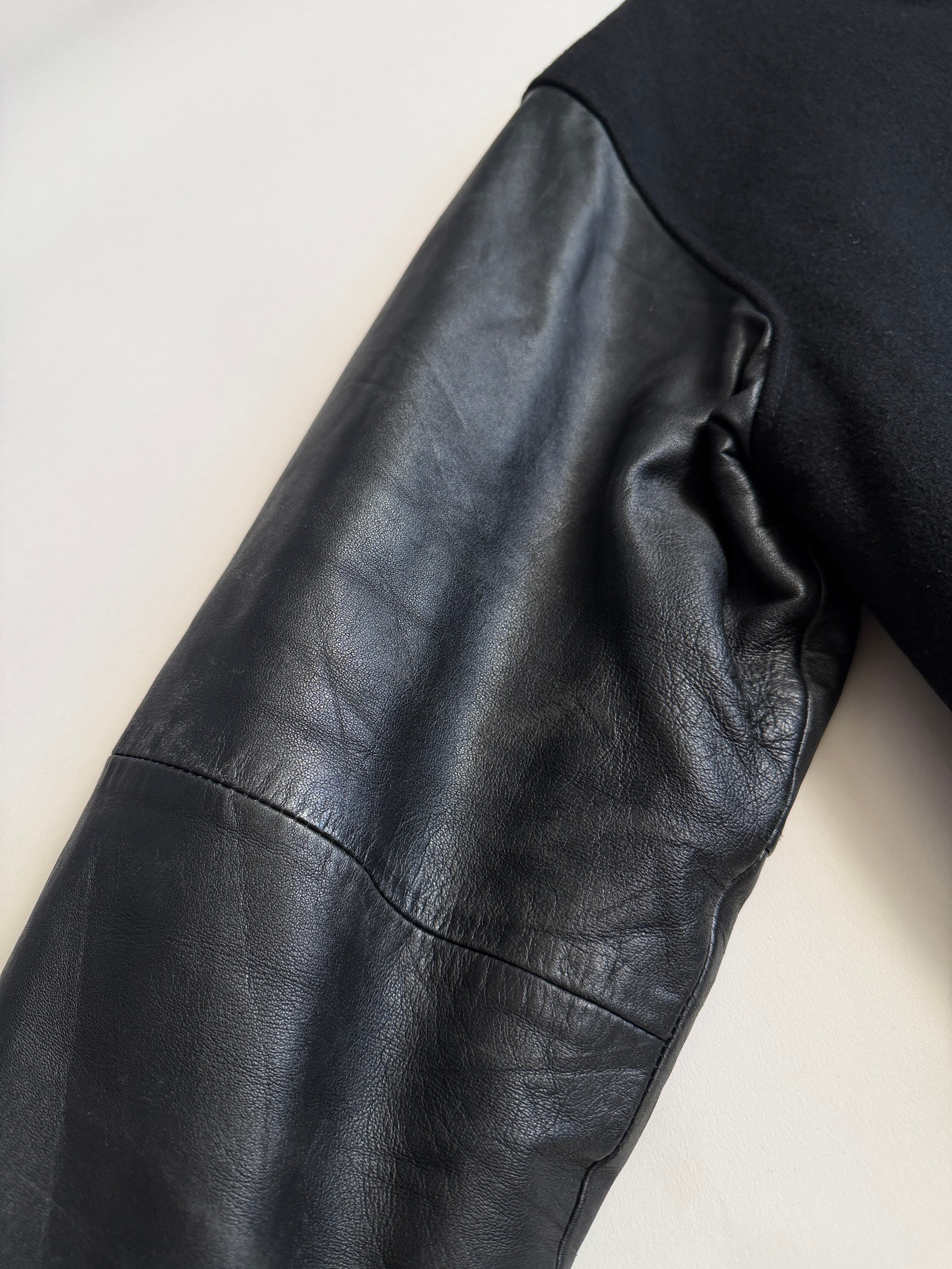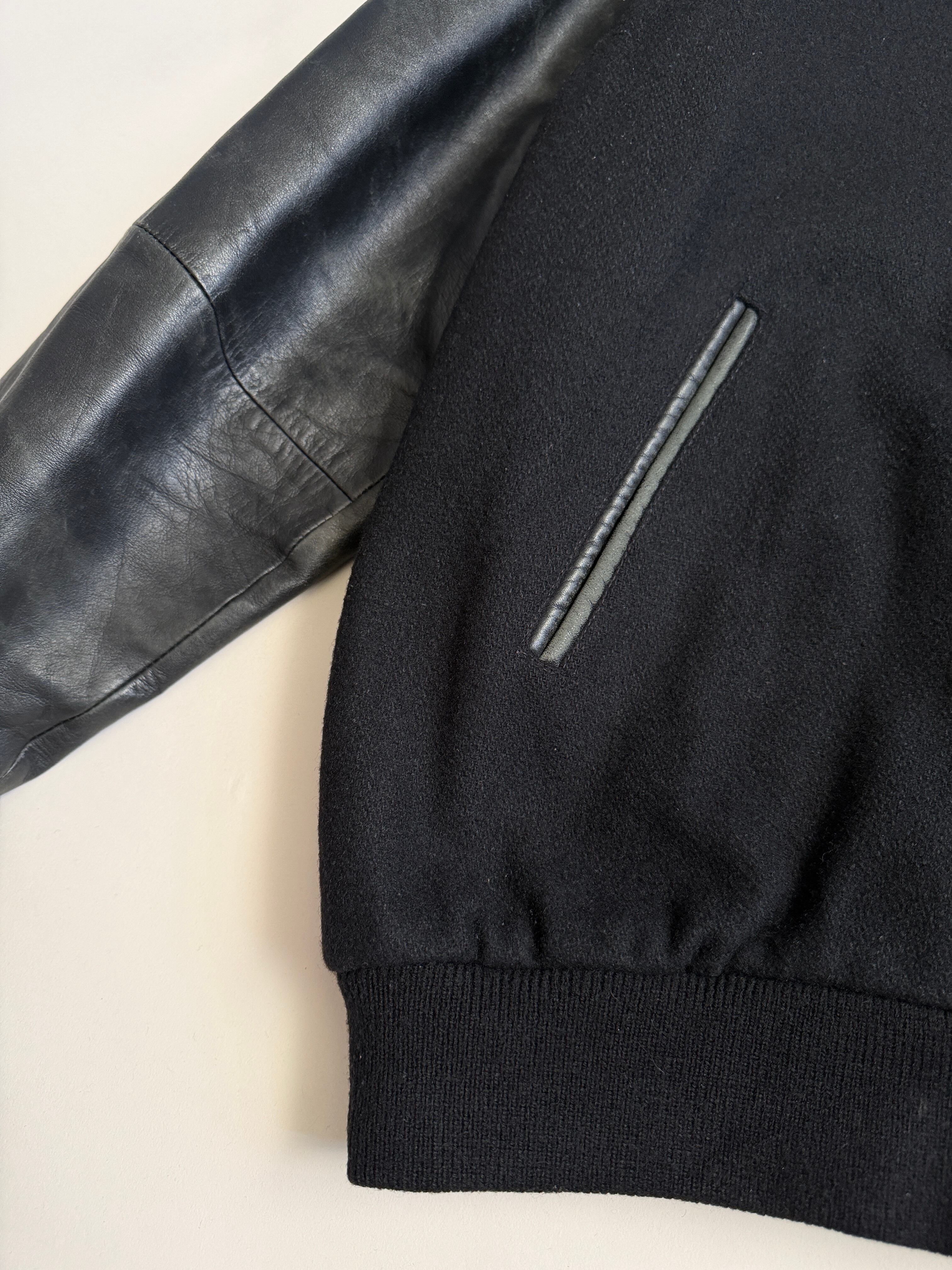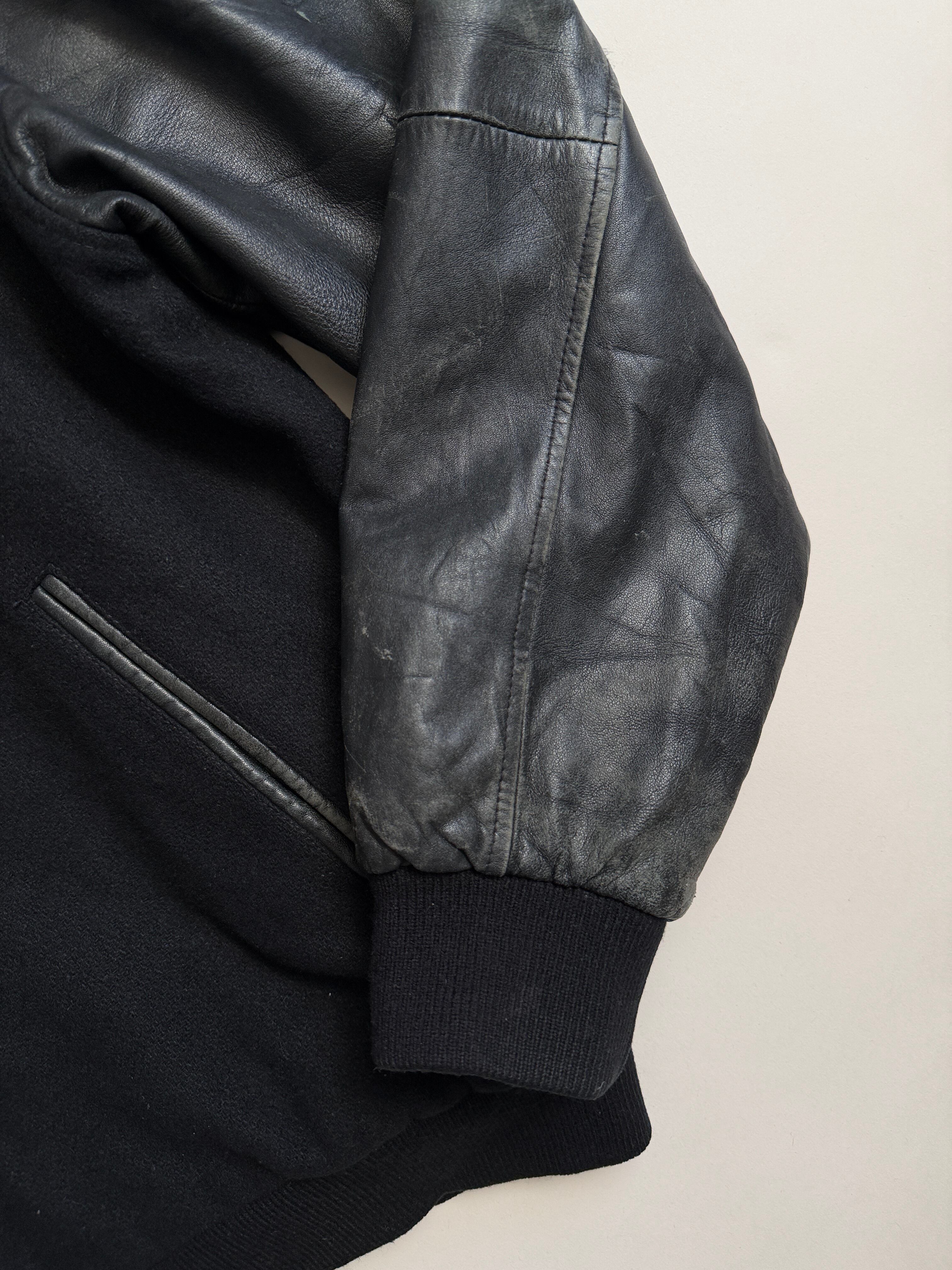 ボディがウールで袖がレザーのスタジャン