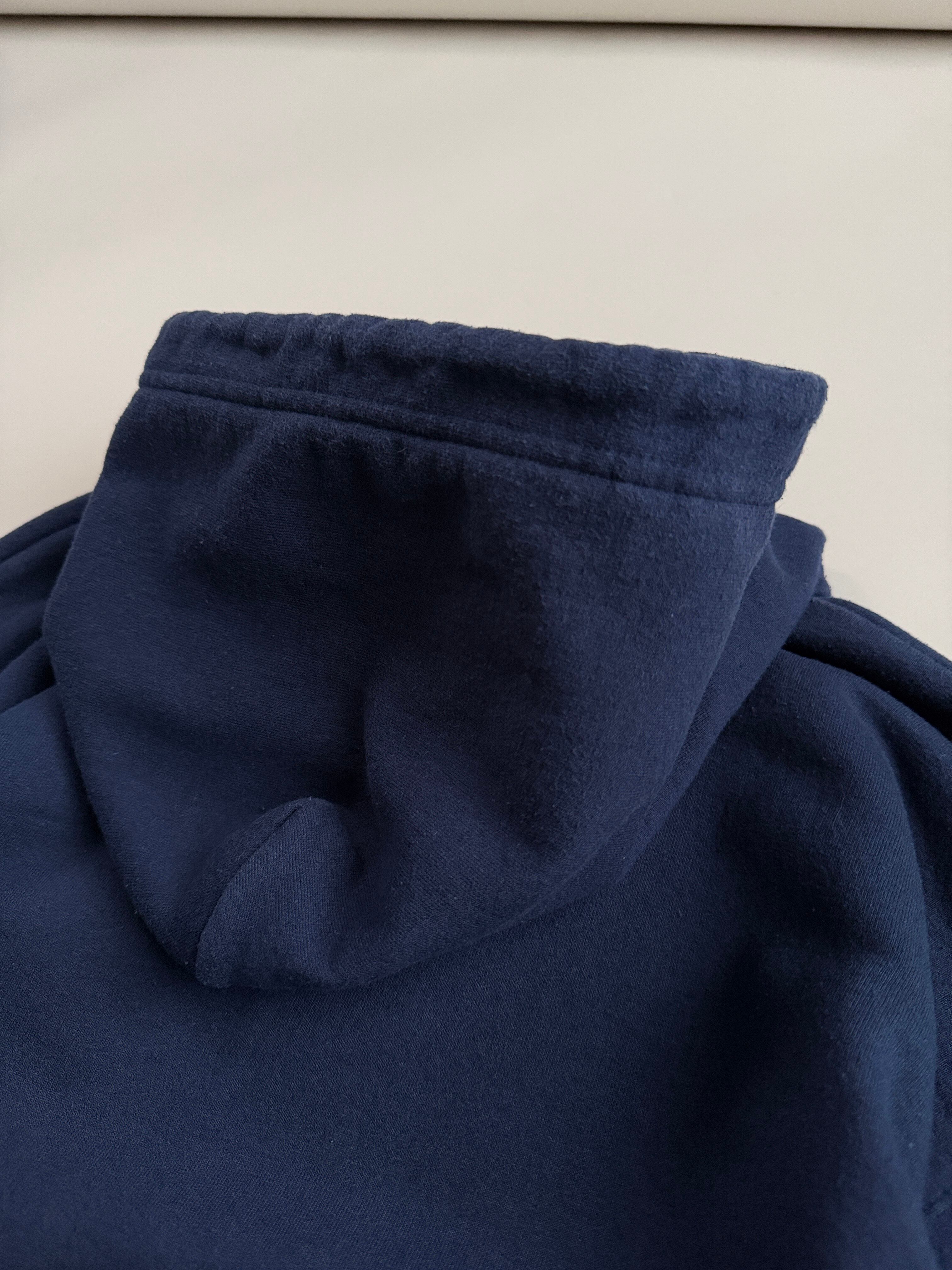 ちょっとわかりにくいですが、おへそのあたり(ポケットのところ)に薄いシミがあります。(写真8枚目)