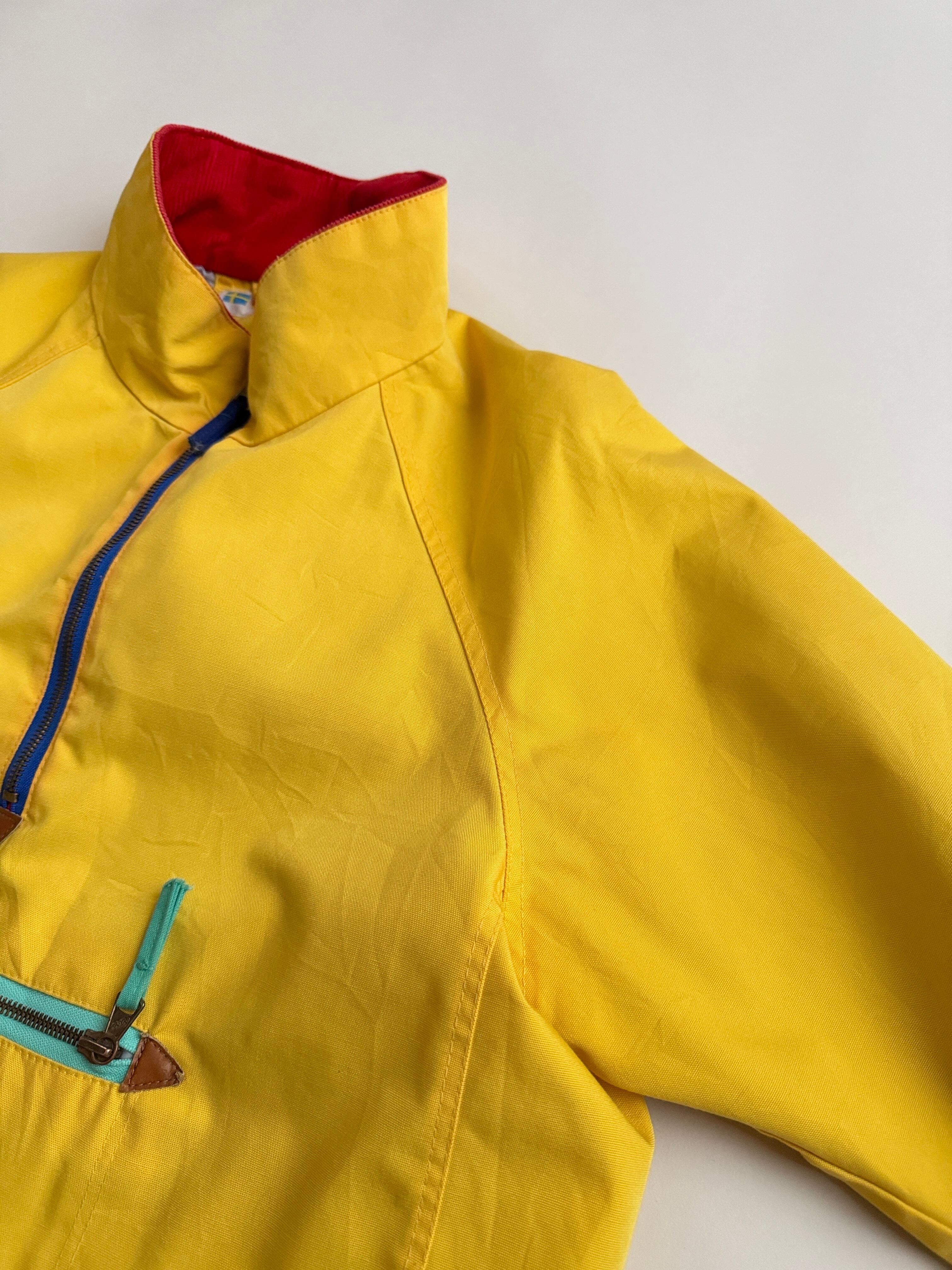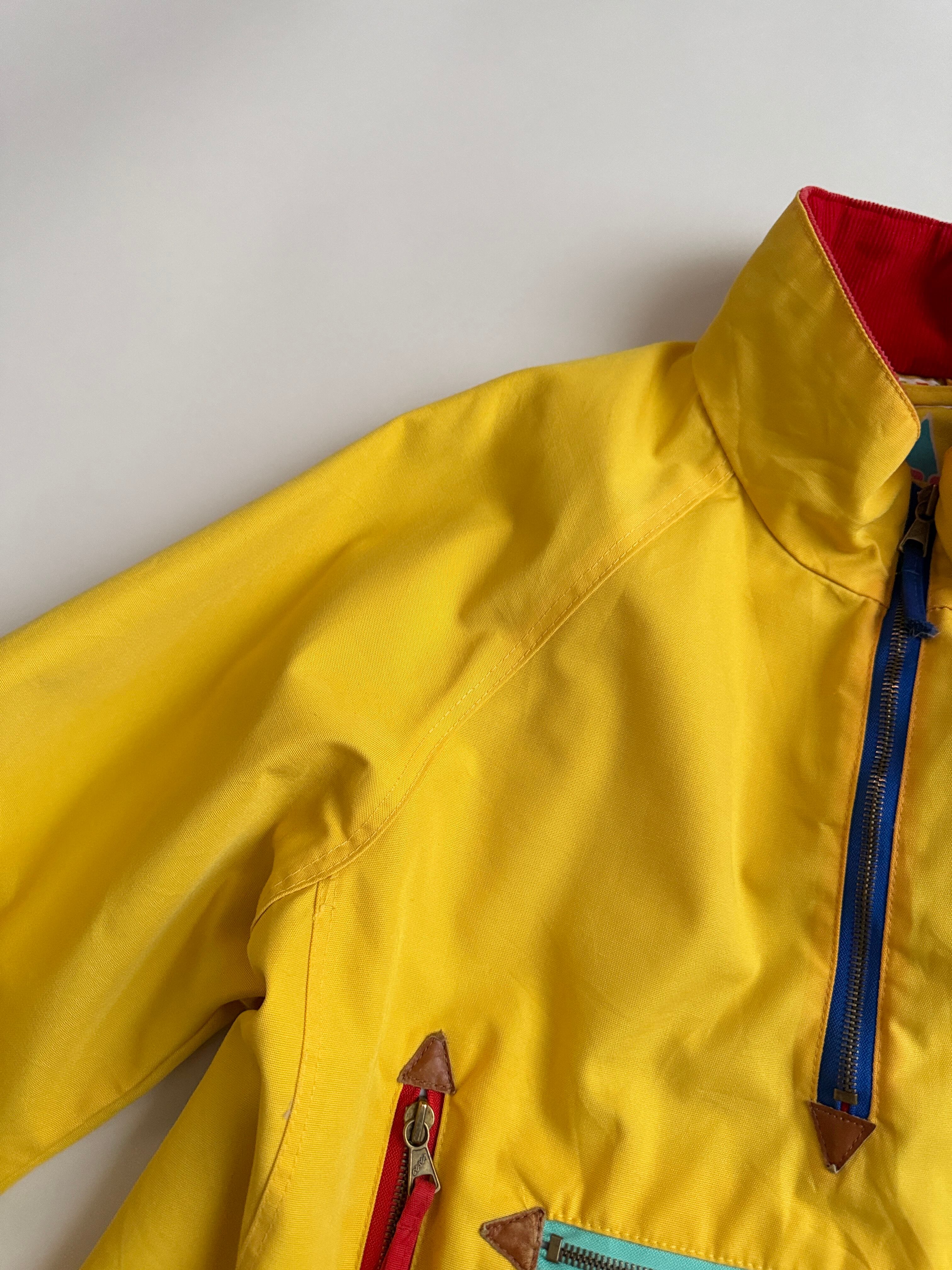 ポケットは横縦に交差してますが繋がってはないです、ジップを下ろすと赤のコーデュロイ生地が!あけてもしめてもかわいい!サイズ感はメンズのMくらい!おすすめ〜!