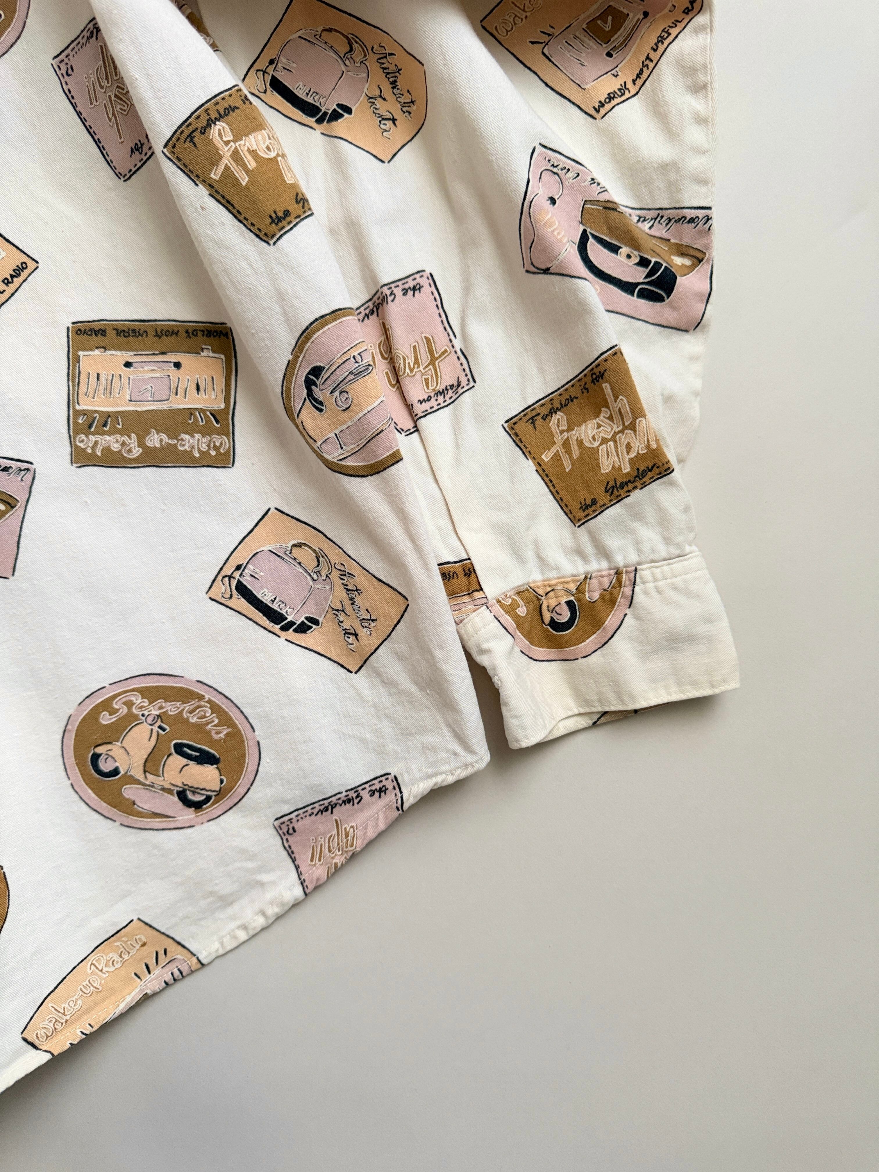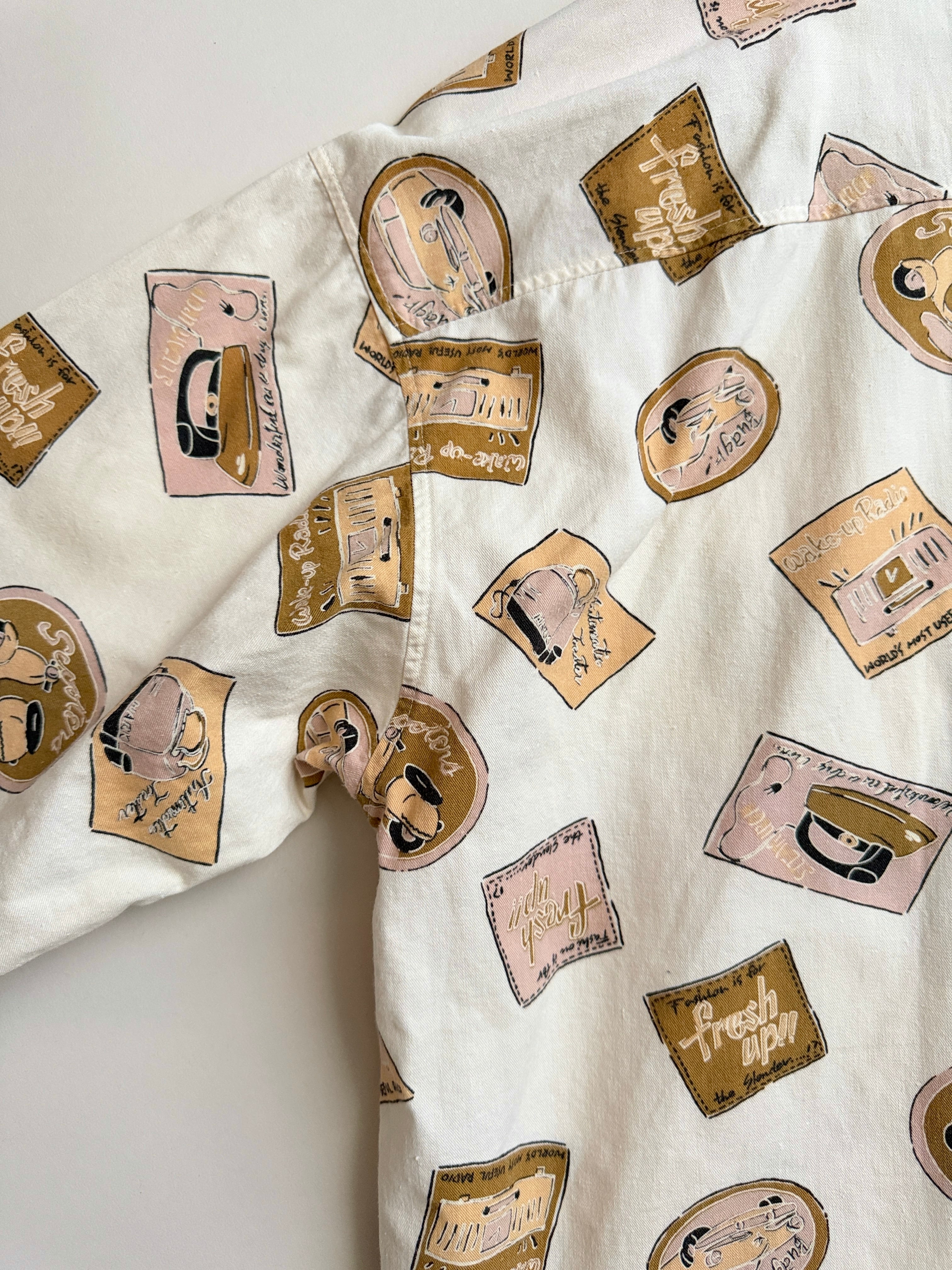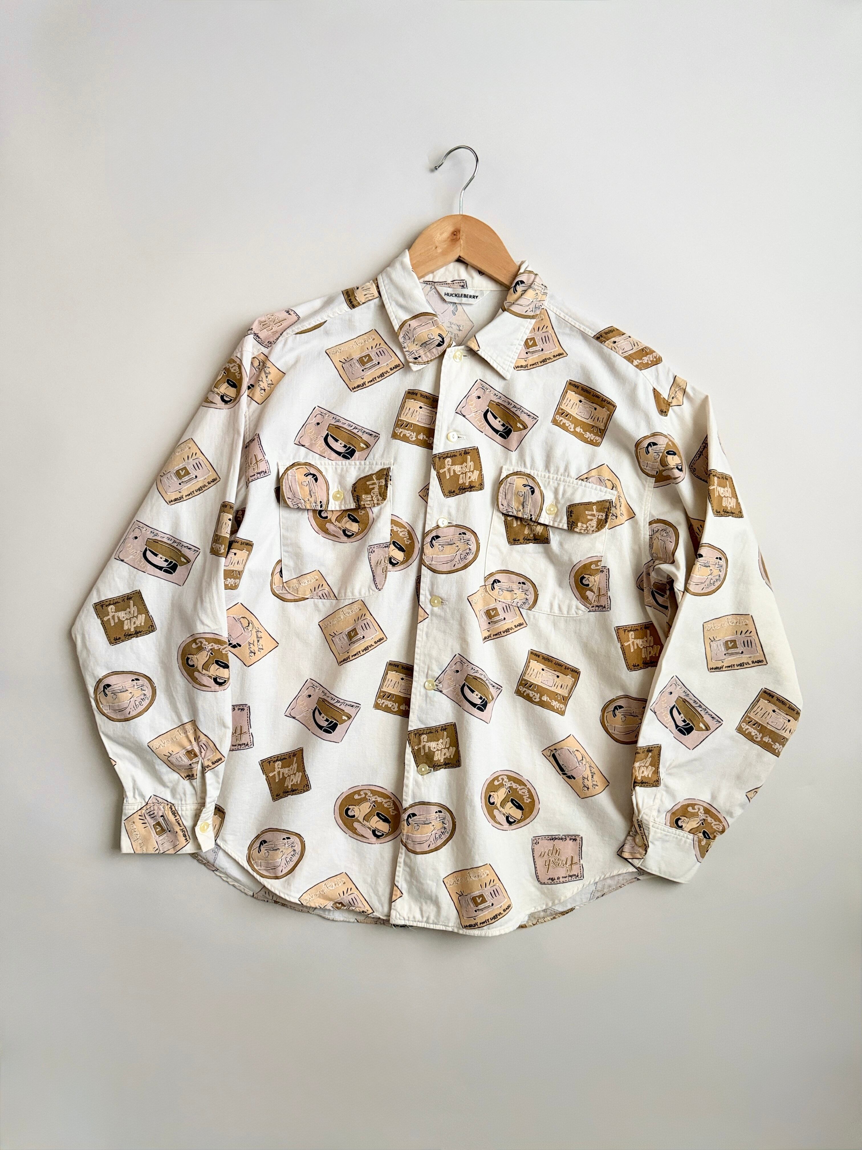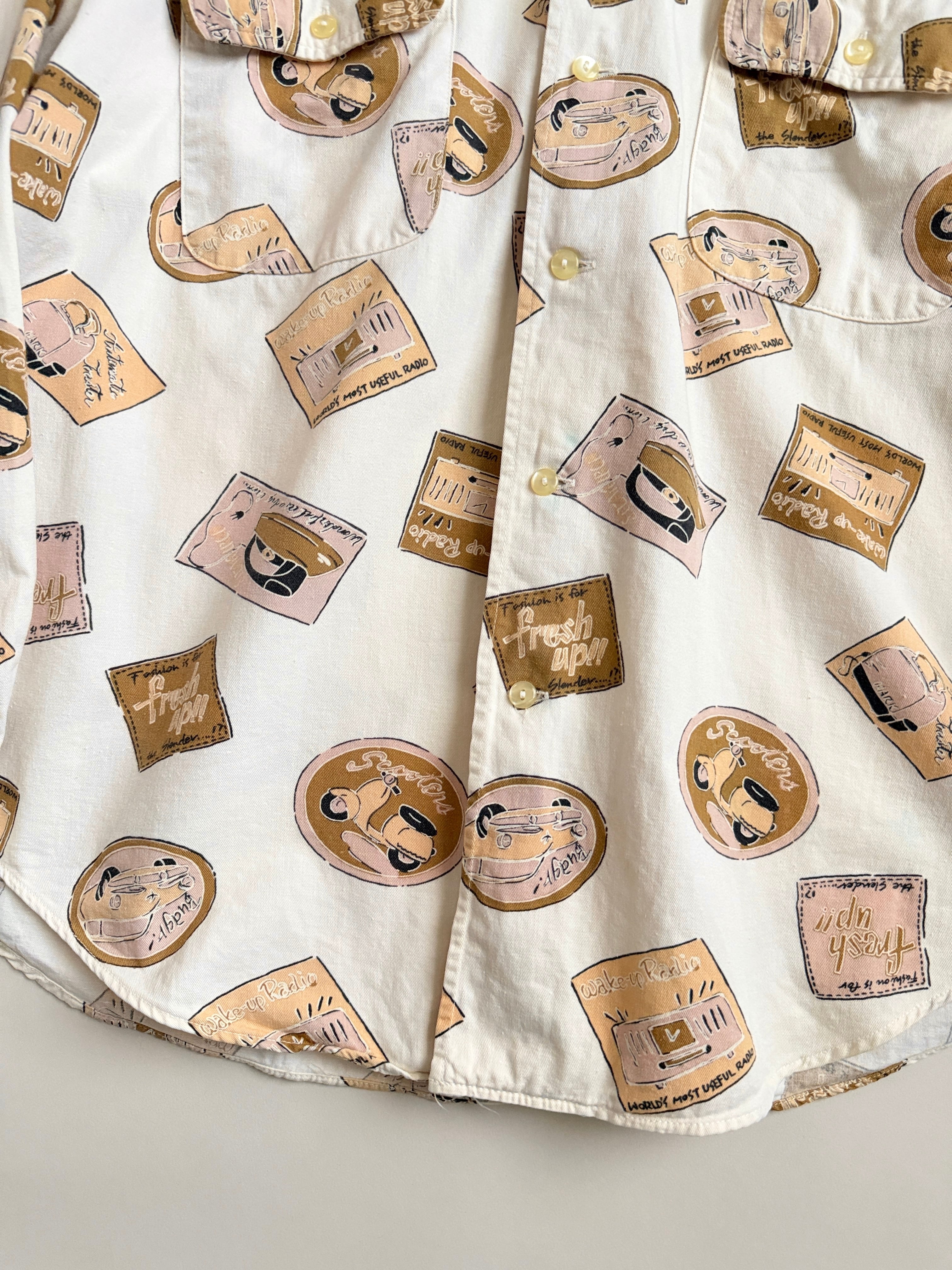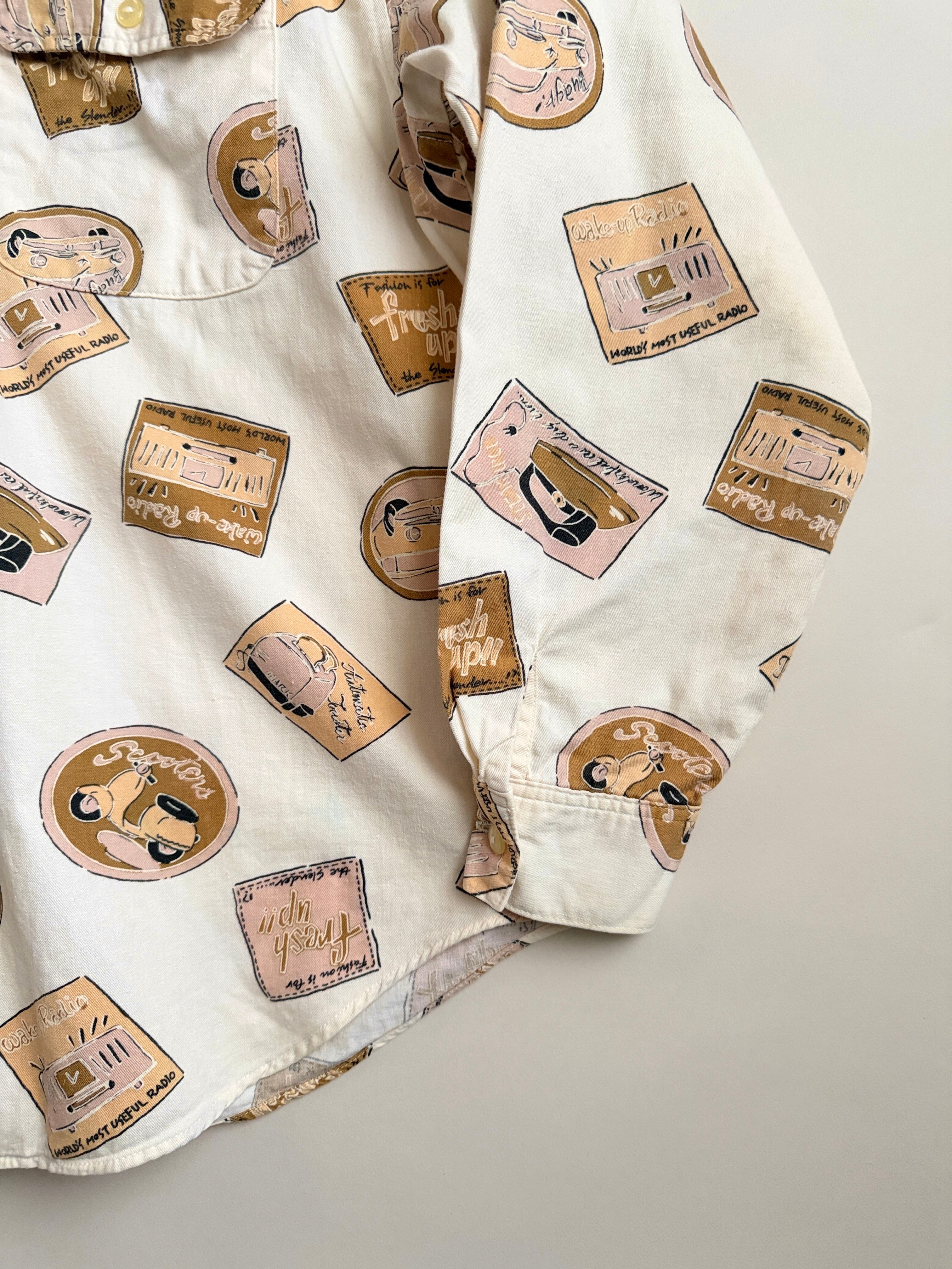 レトロな絵柄でプリントされてる生地のシャツ