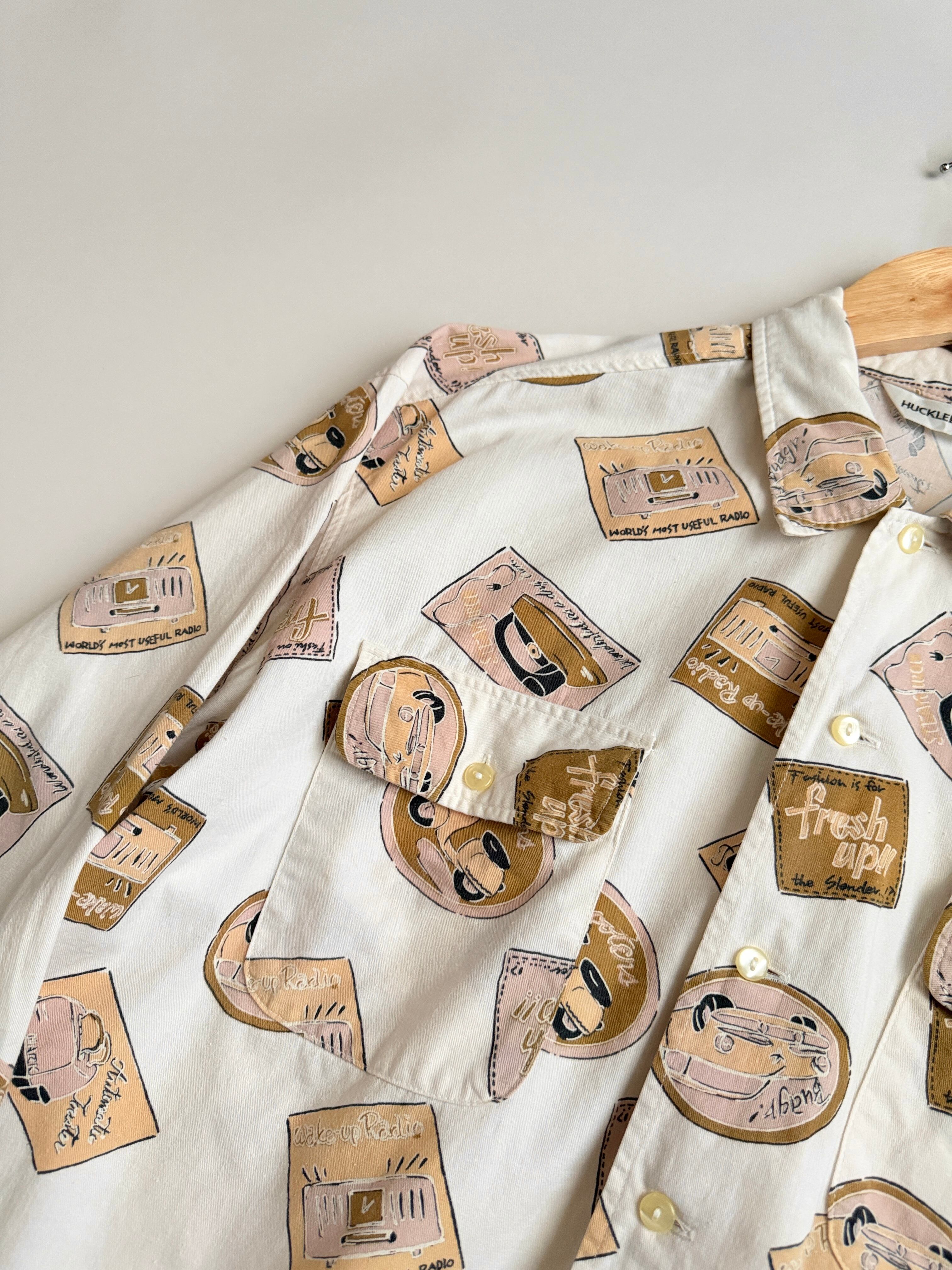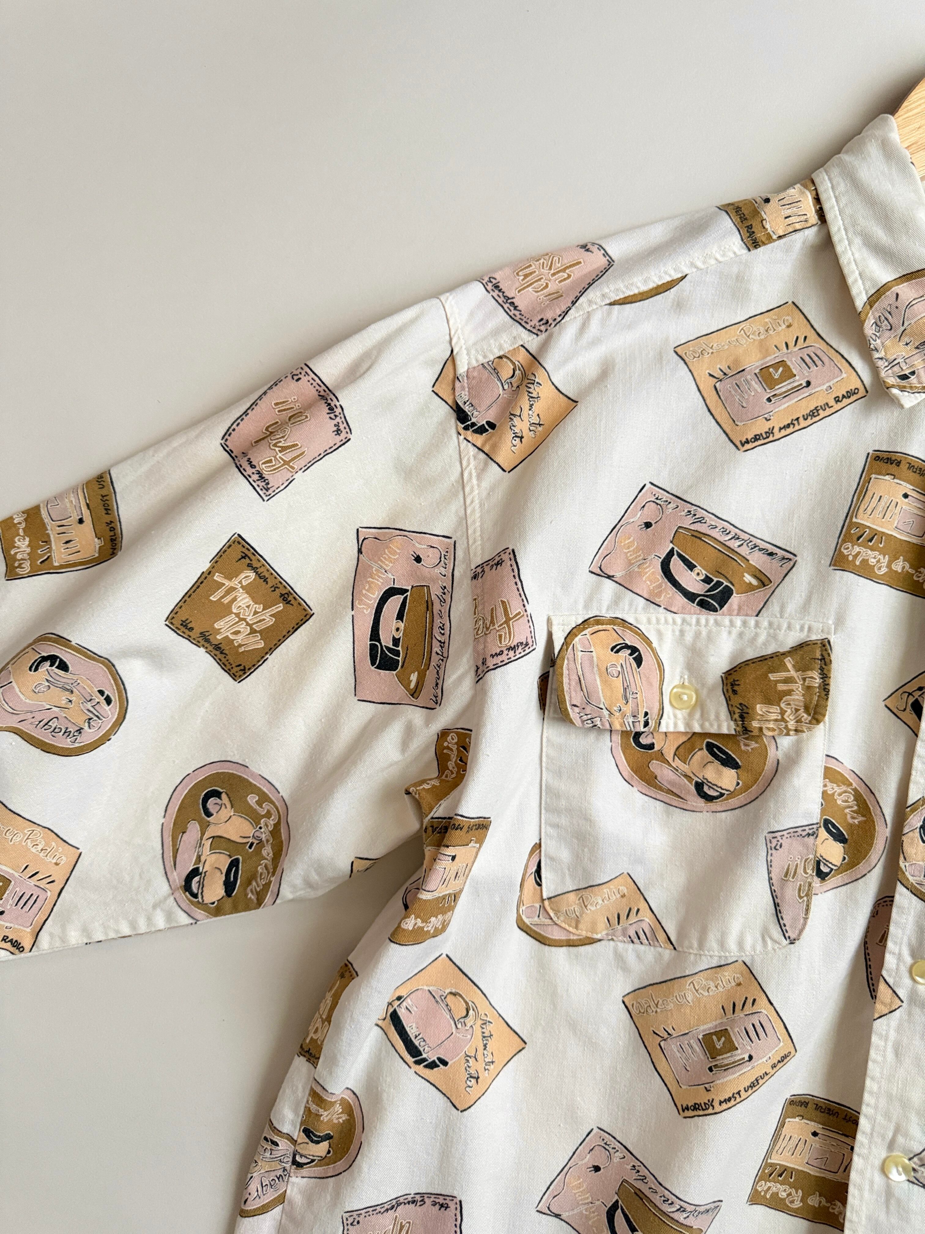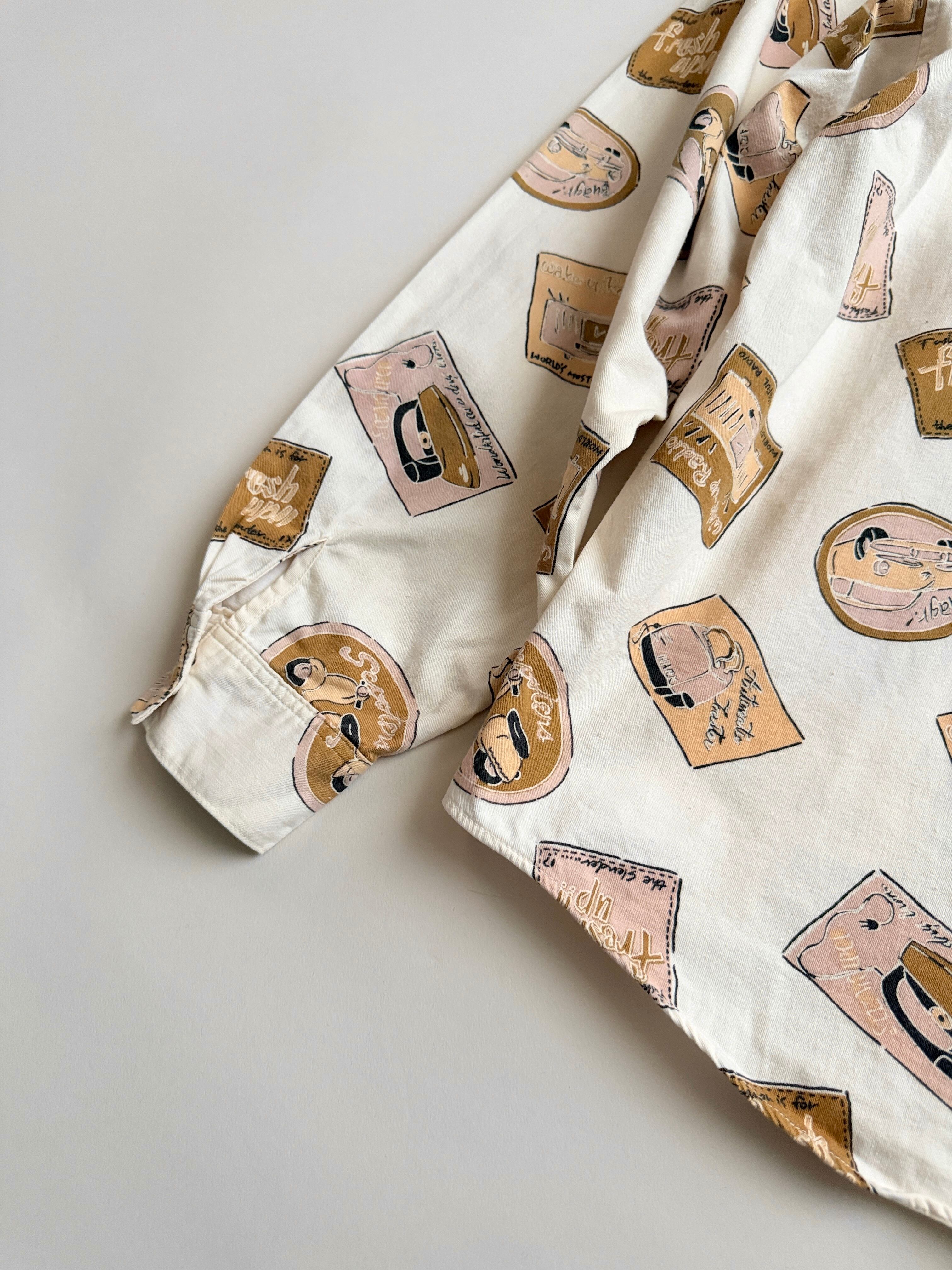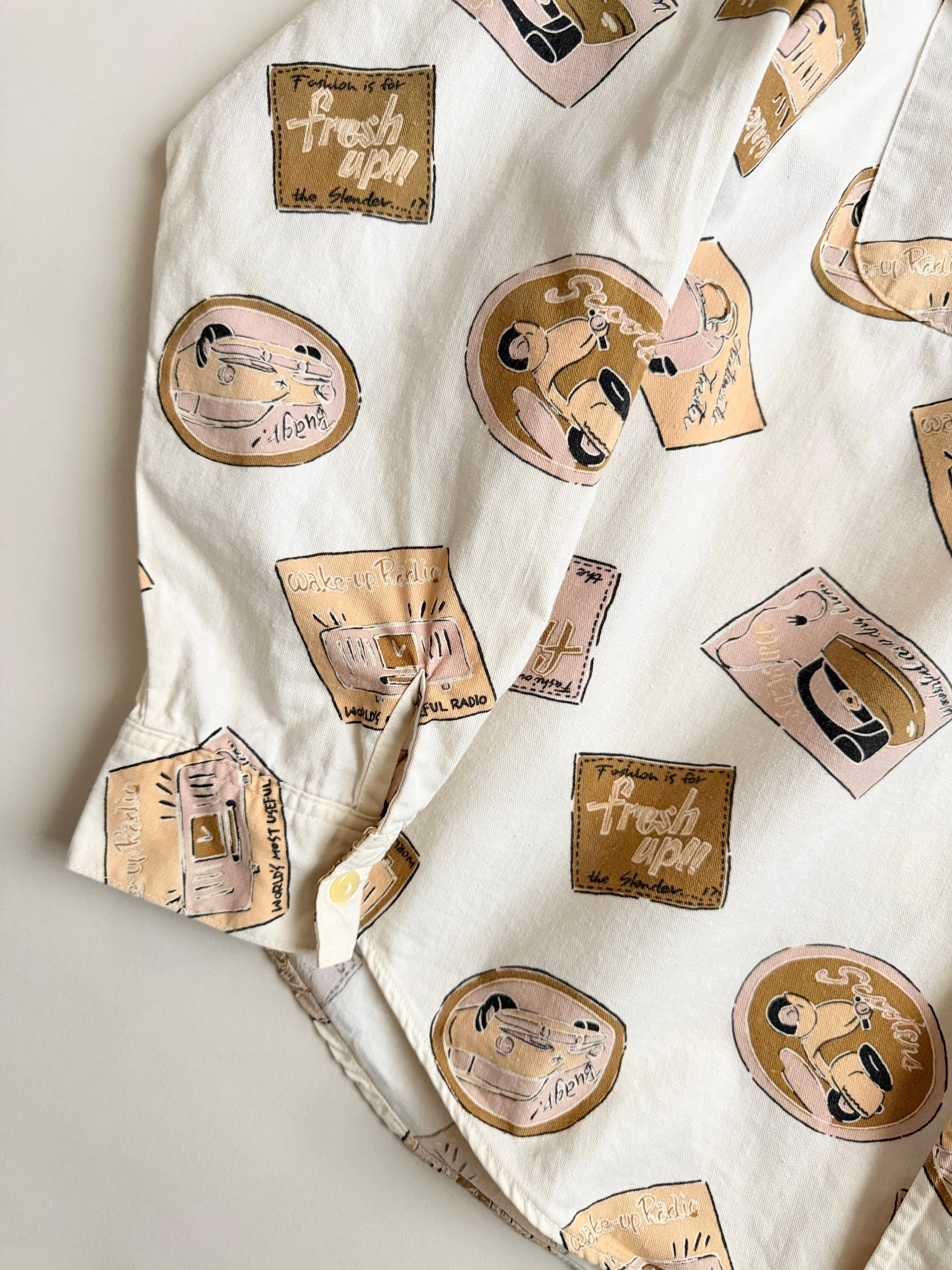 レトロな絵柄でプリントされてる生地のシャツ