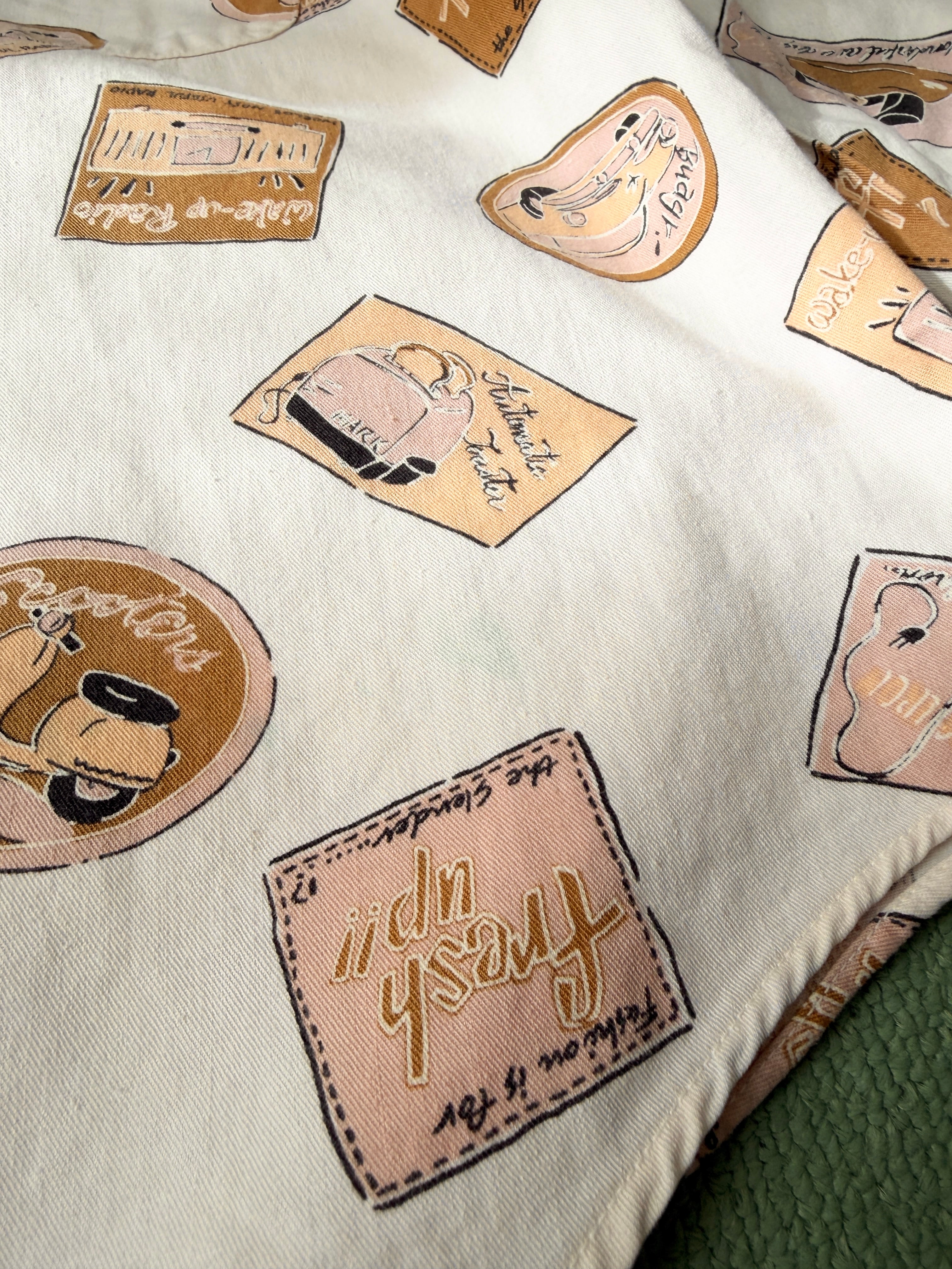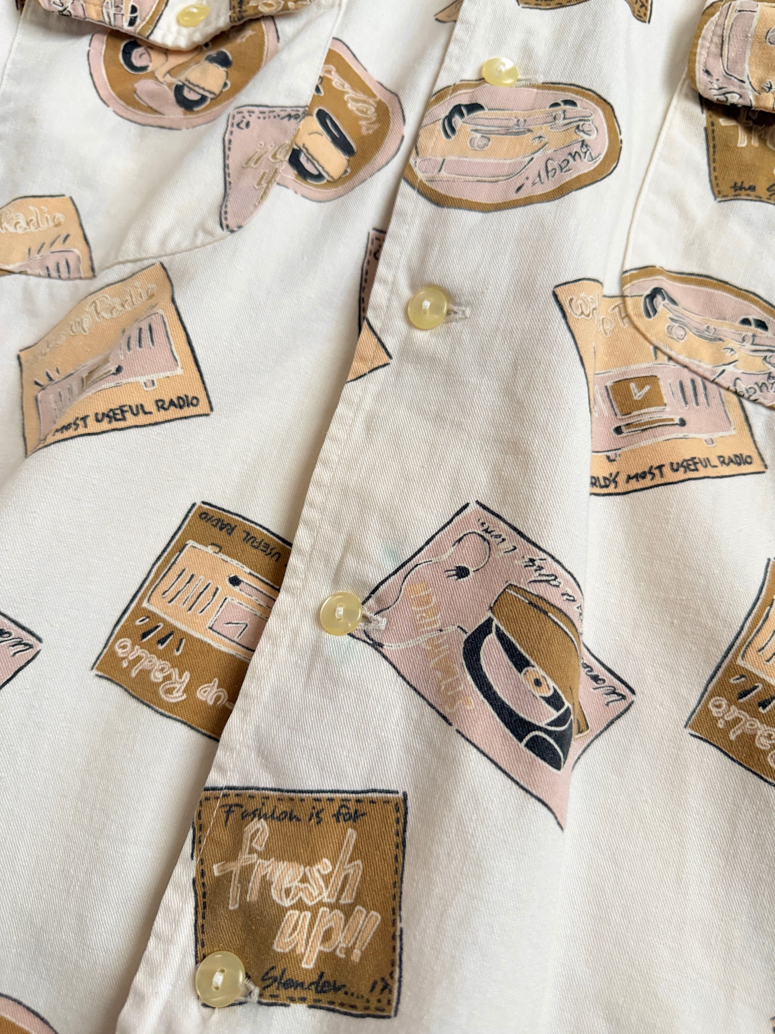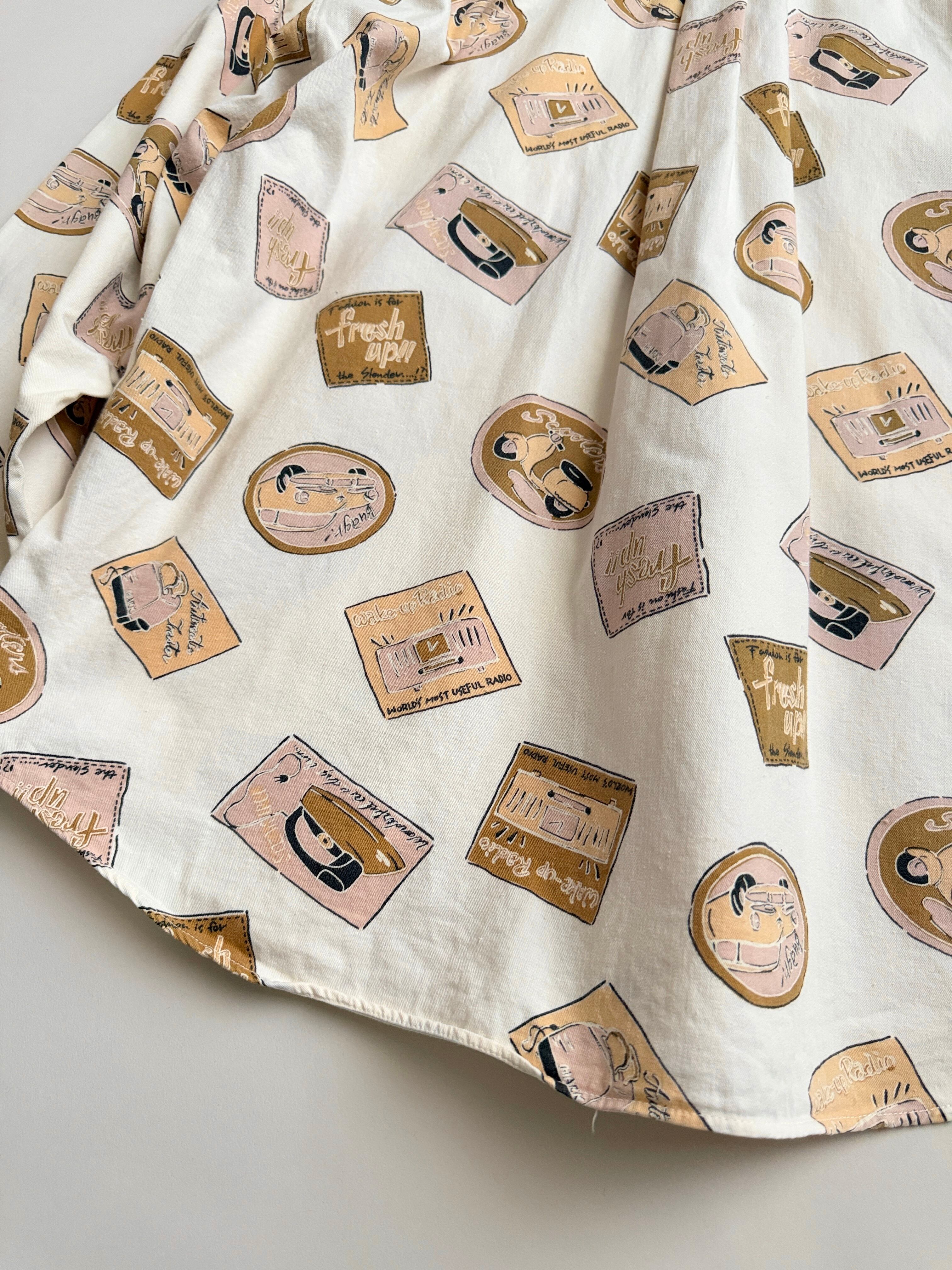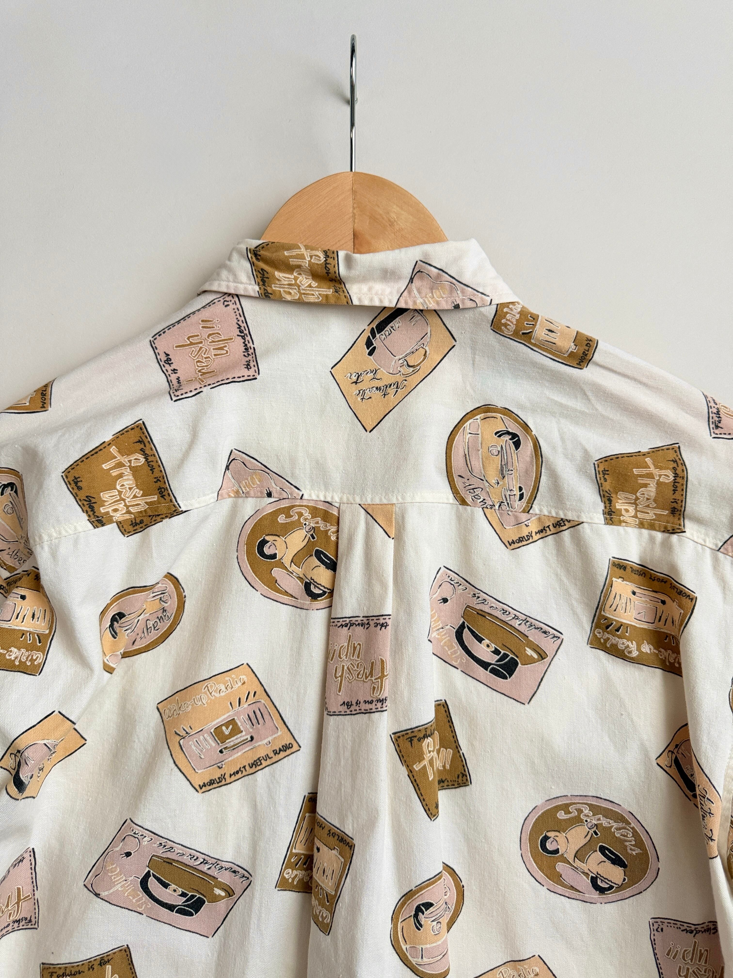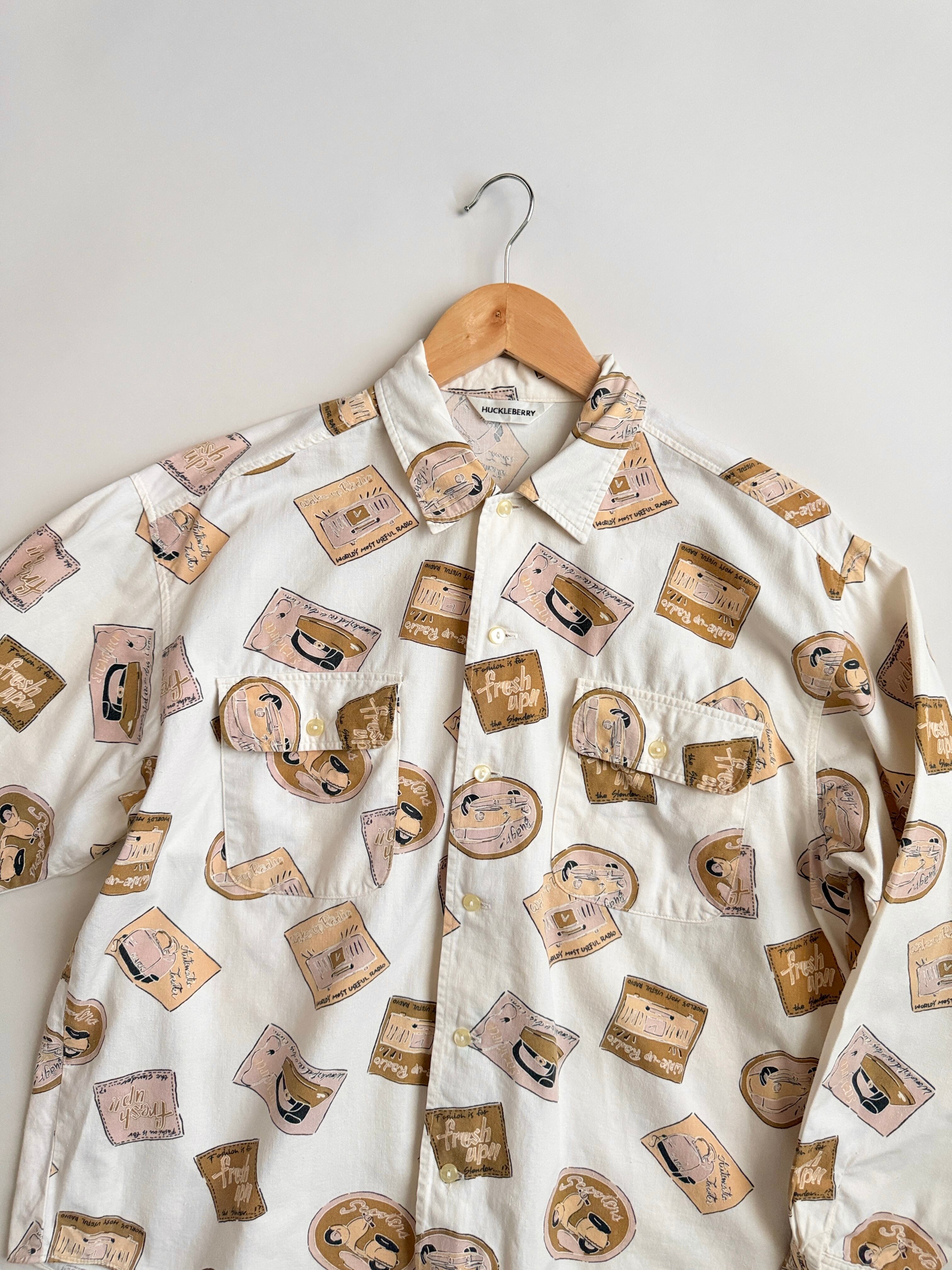 レトロな絵柄でプリントされてる生地のシャツ