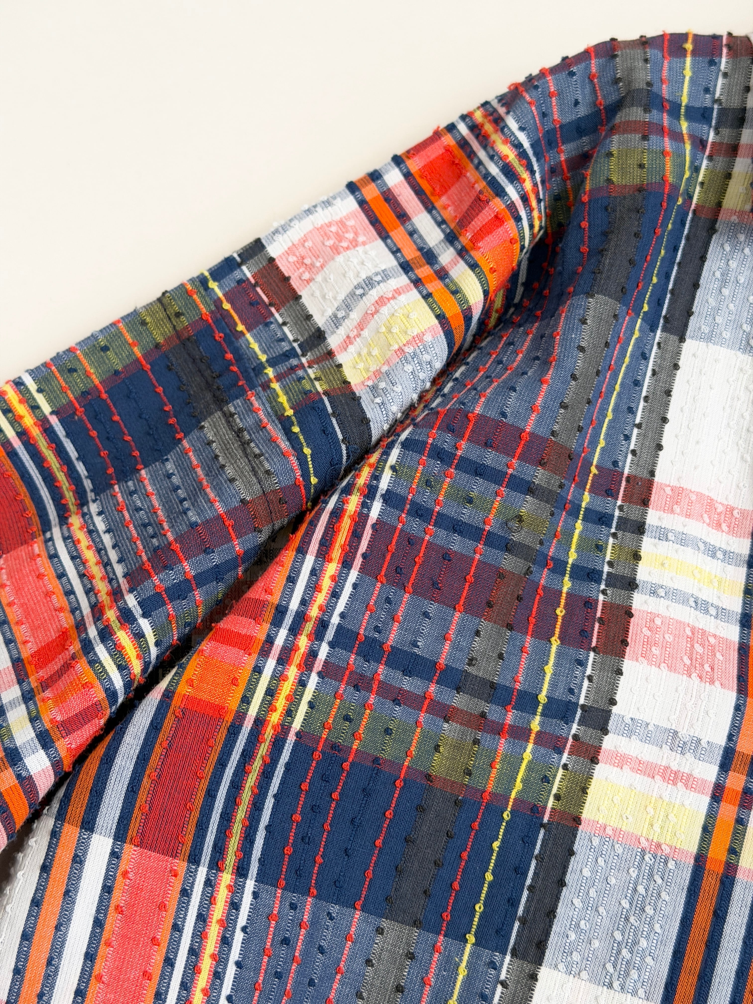 ほぼシアサッカーっぽい生地感なんですけど、これは凹凸が装飾糸で表面に出てます!