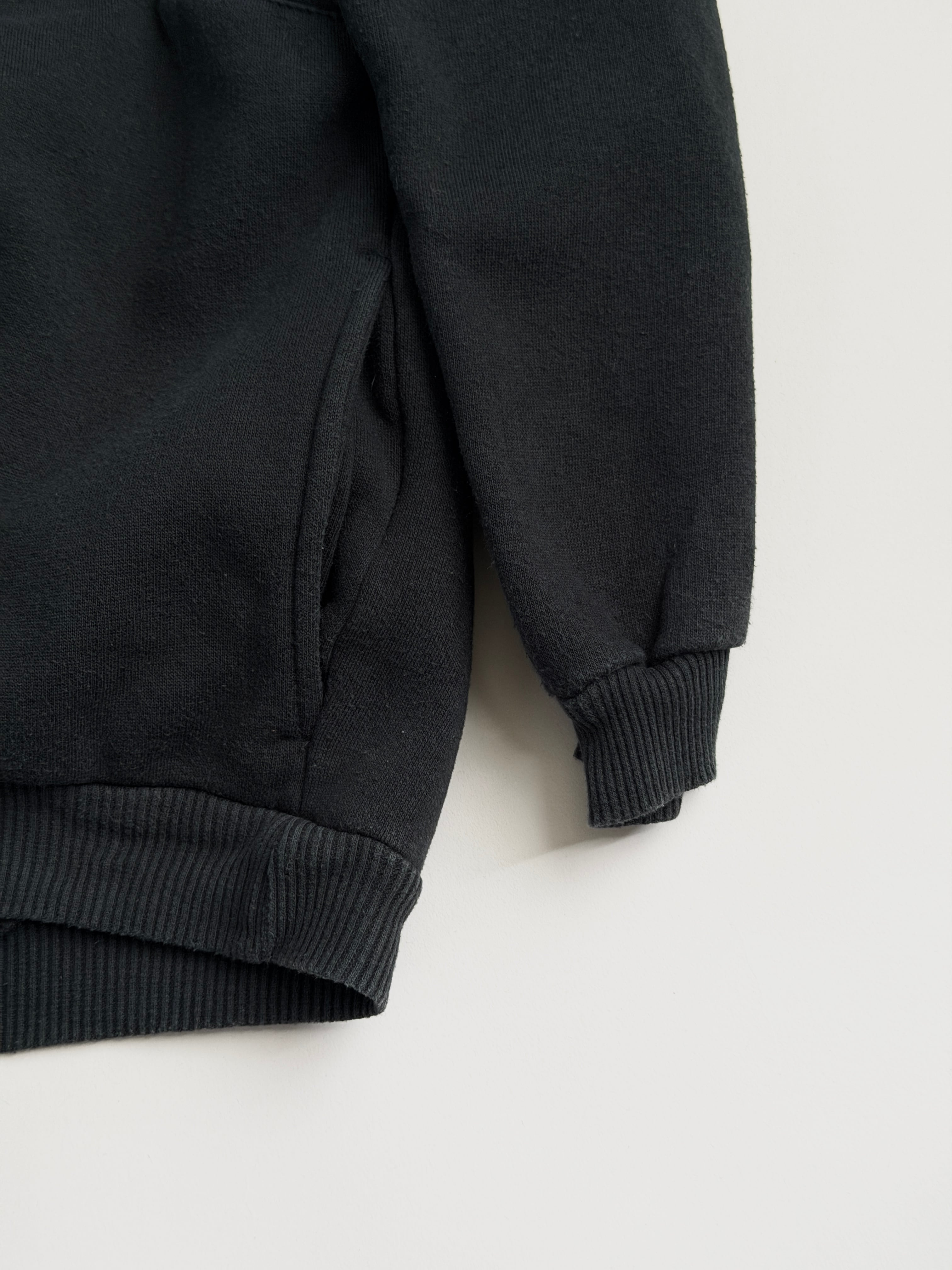 胸から袖にかけてのパターンが特徴的なかぶりのパーカーです