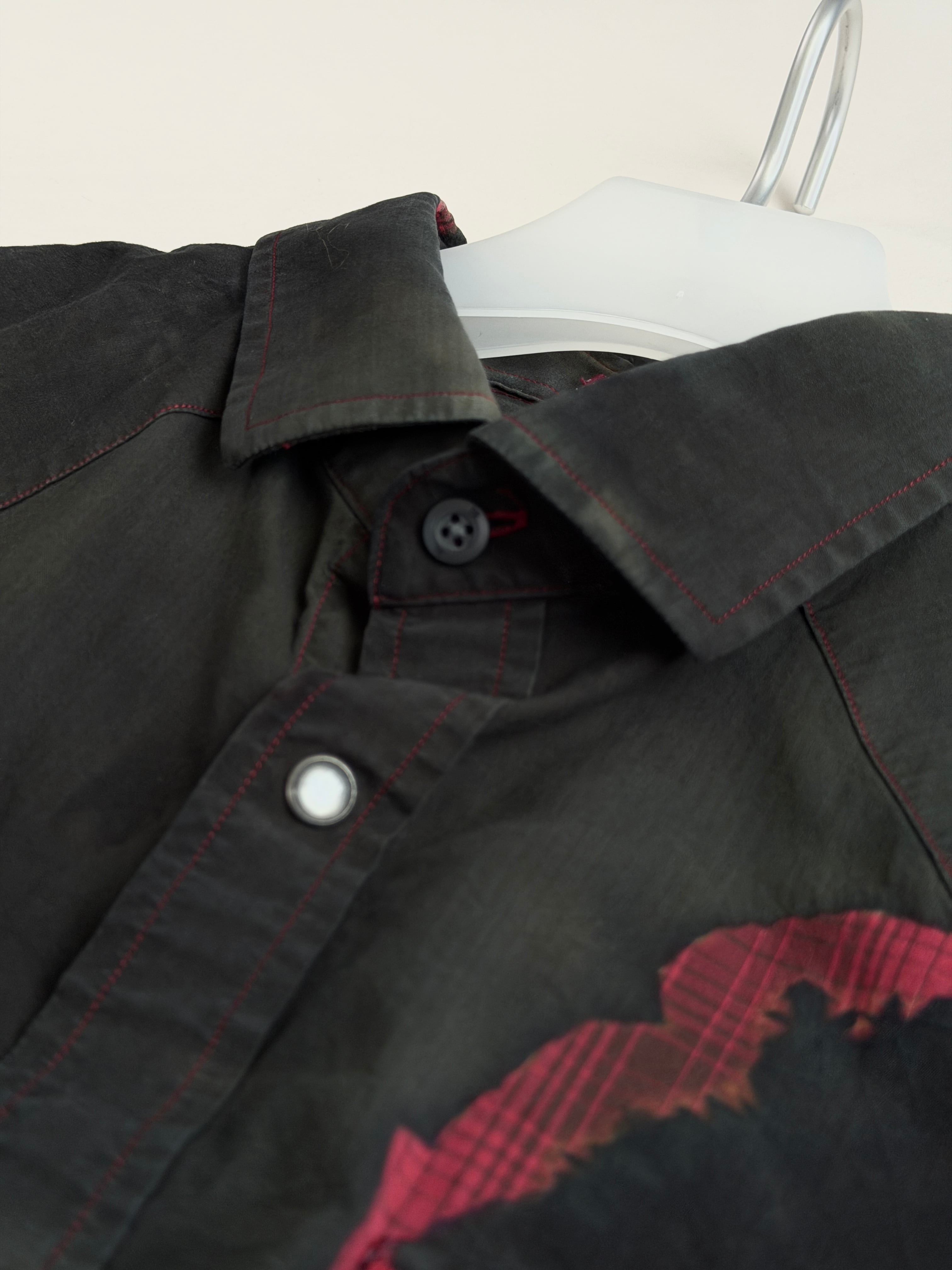 ゴシックなムードに赤のステッチも映えてかわいいおすすめのシャツです〜