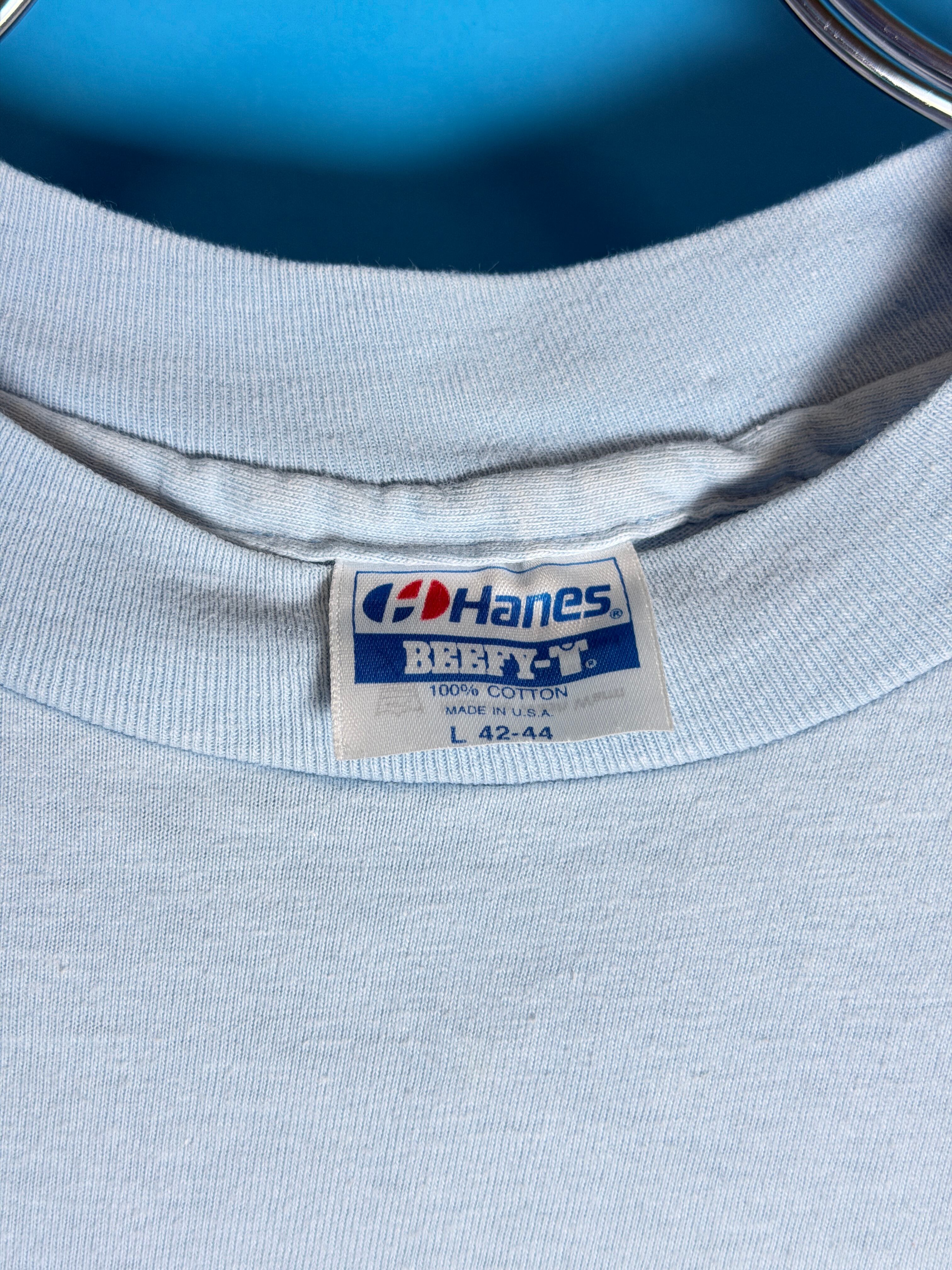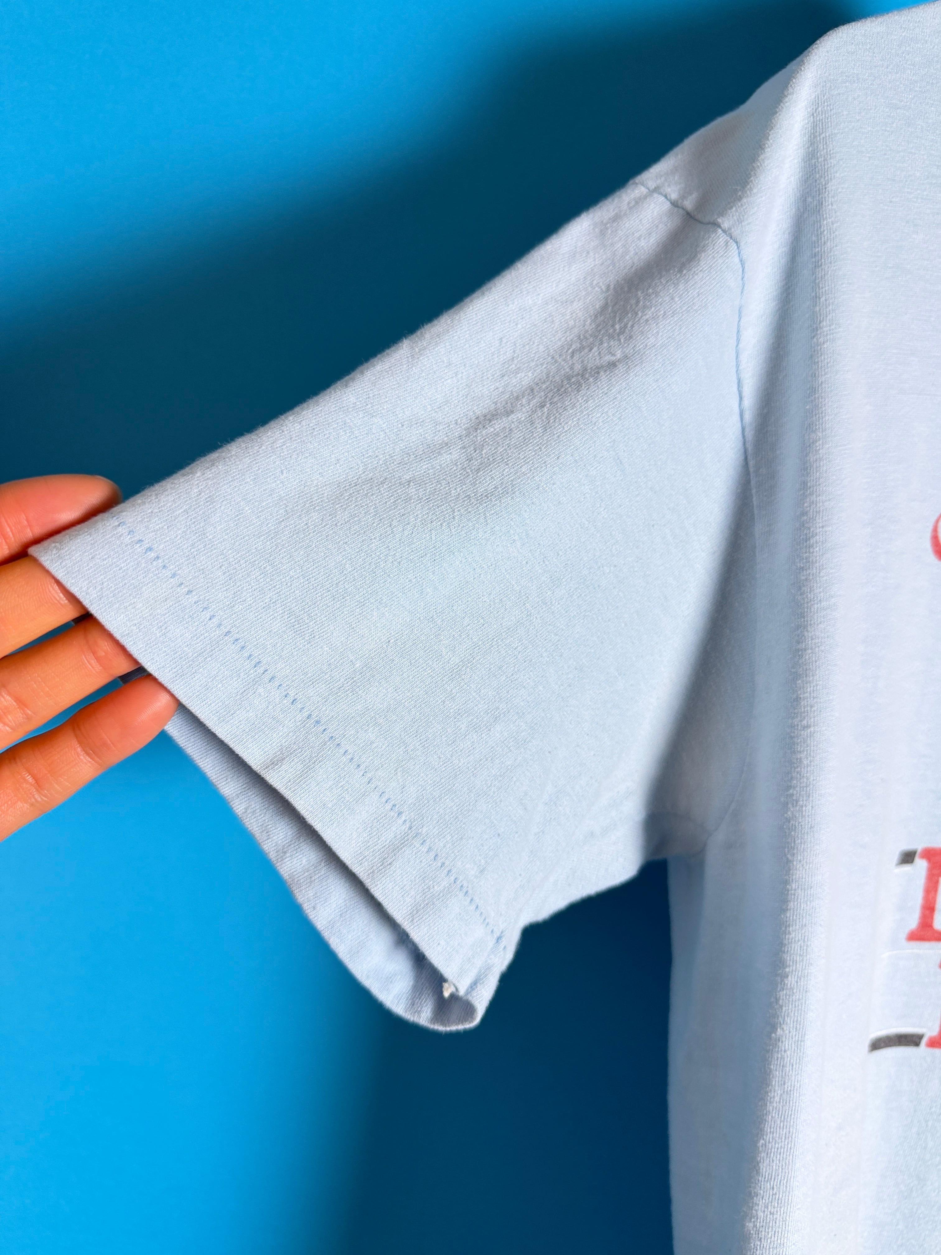 褪せた水色です、お腹のあたりなどに色ムラがあります
